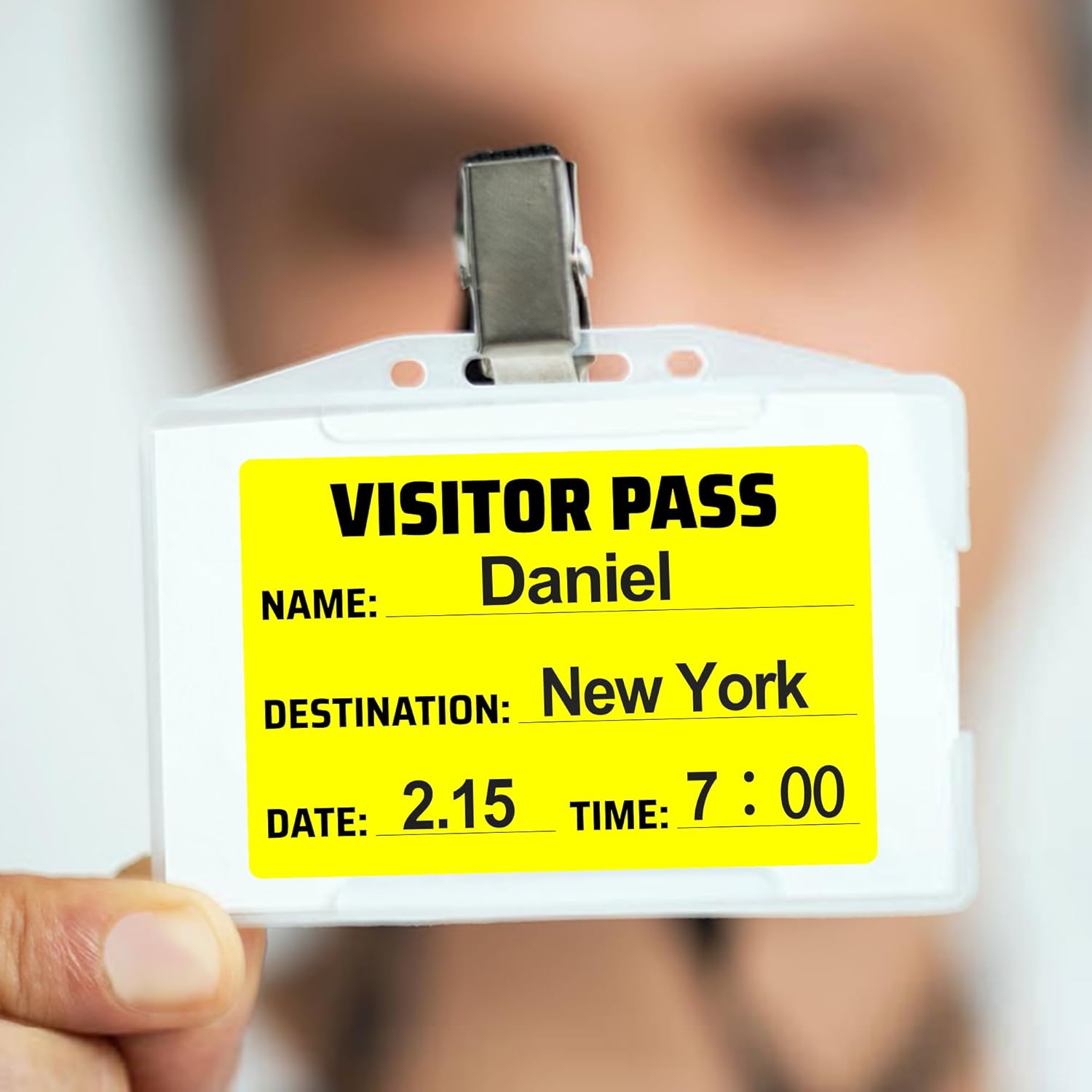 Visitor Pass Stickers – 300 Writable Name Tag Labels, 2 x 3 Inch, Self-Adhesive Identification Badges for Office, School, Events (300Pcs-Fluorescent Yellow)