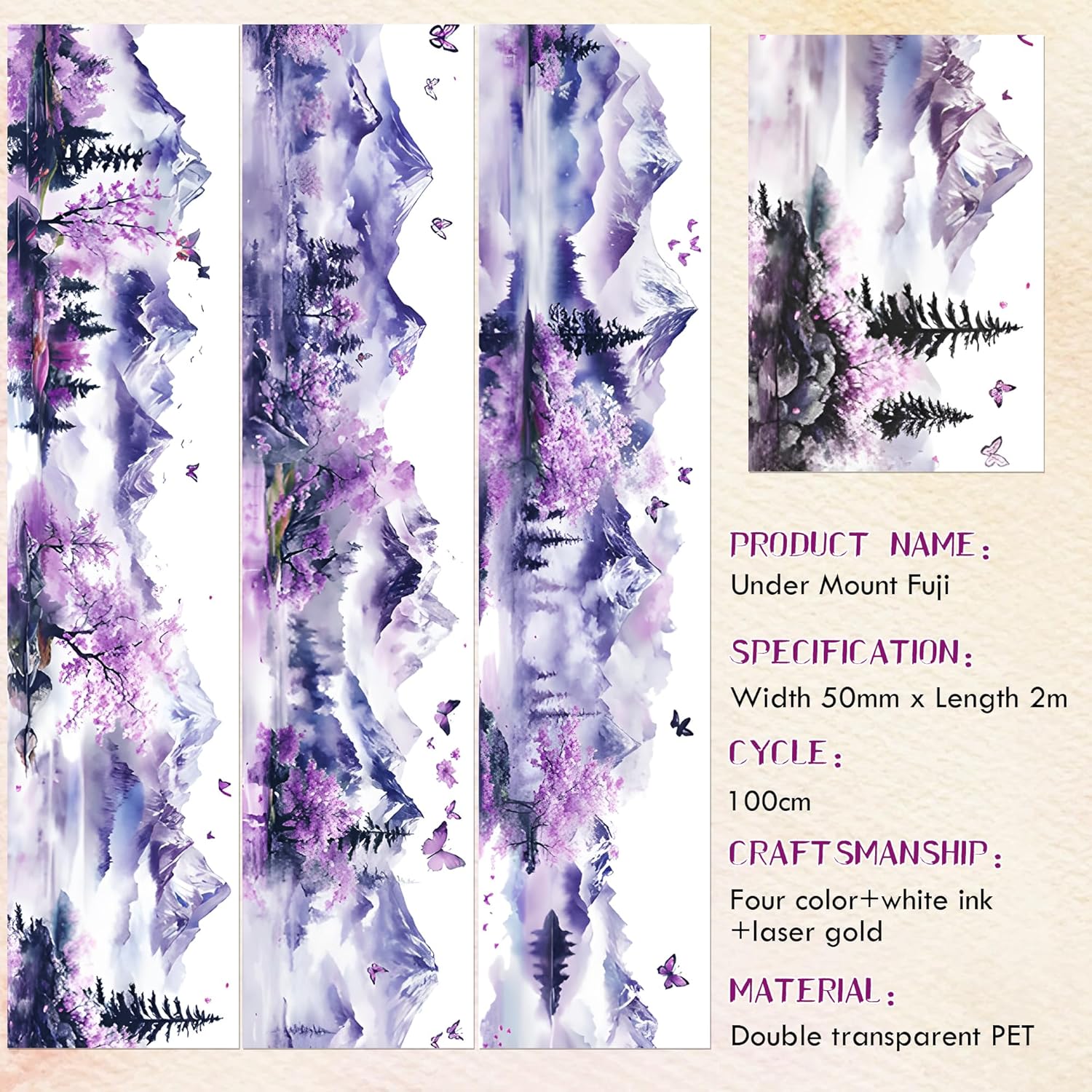 - Elegant Floral Mountain Design: This PET tape showcases exquisite watercolor illustrations of cherry mountain blossoms and butterflies, adding a touch of serenity and beauty to your creative endeavors