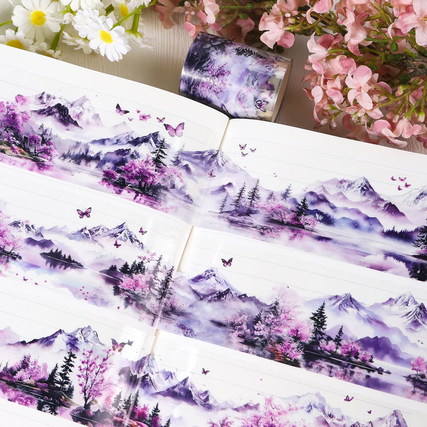 PET Tape for Journal Scrapbooking - Cherry Mountain Forest Junk Journal PET Tape Scrapbook Supplies, Scrapbook Notebook Bottle Crafts Decorating