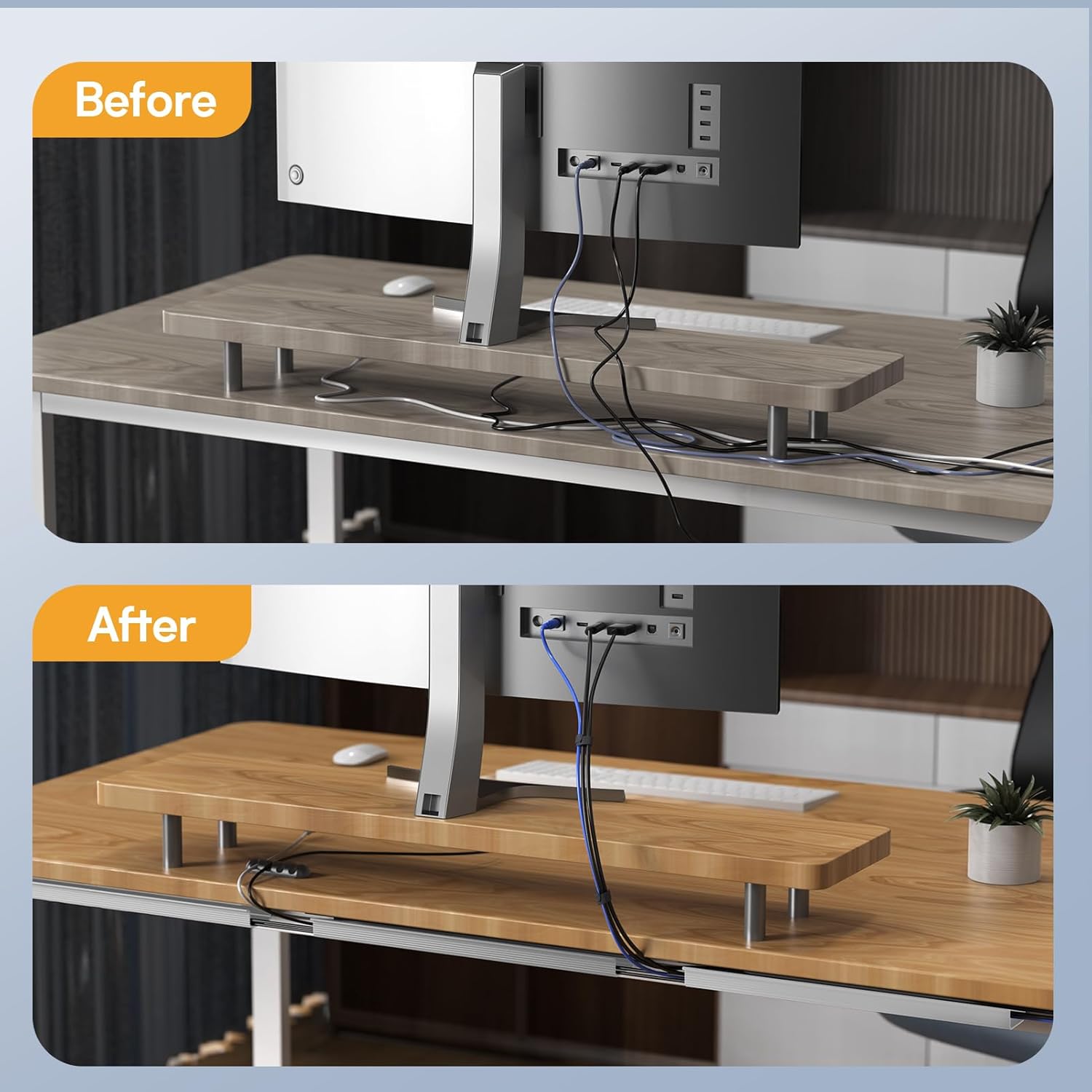 - Worry Free Cable Management Solution: This cable management under desk offers a simple and effective way to manage wires in both home and office settings, the primary function of our cable organizer is to neatly organize cables, reducing the risk of electrical hazards due to disorganized wires, thus protecting children and pets from potential electrical harm
