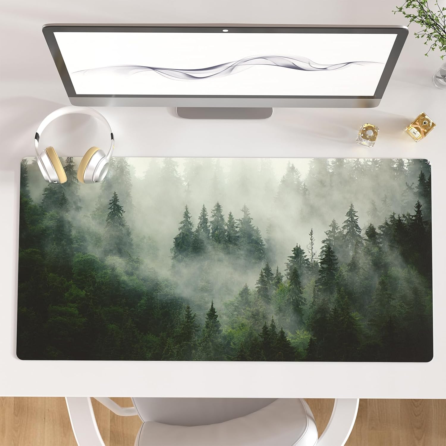 QIYI Large Mouse Pad, Extended Desk Mat for Desktop, PU Leather Waterproof Gaming Mousepad, Computer Desk Accessories Protector Writing Pads for School Office Home 31.5" x 15.7" - Misty Forest