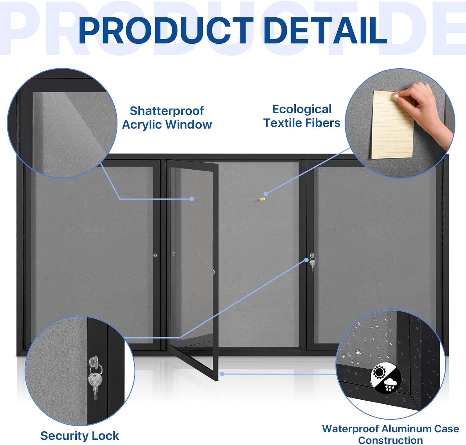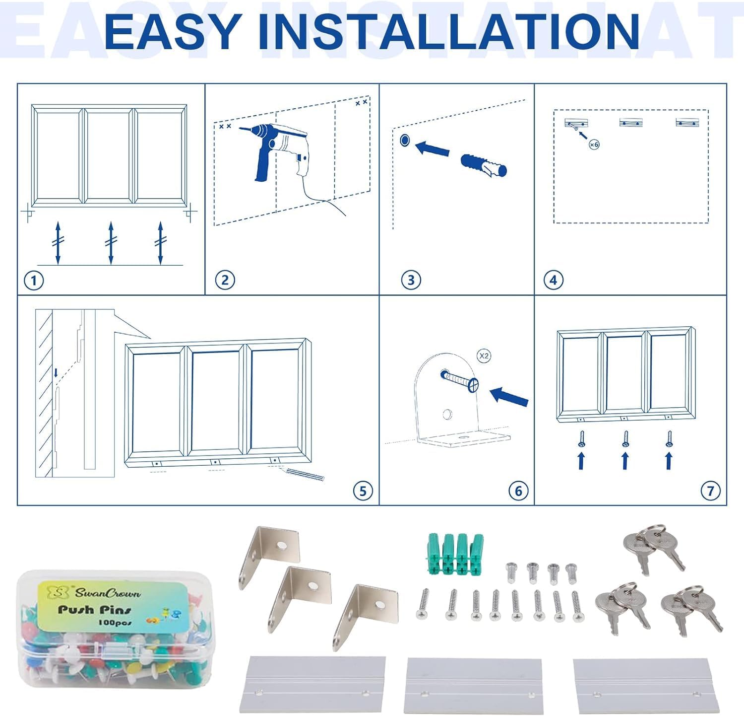 - š Wide Application ā lockable bulletin board is great for offices, schools, apartments, hotels, hospitals, restaurants, and more. Ideal for public or shared spaces indoors or outdoors