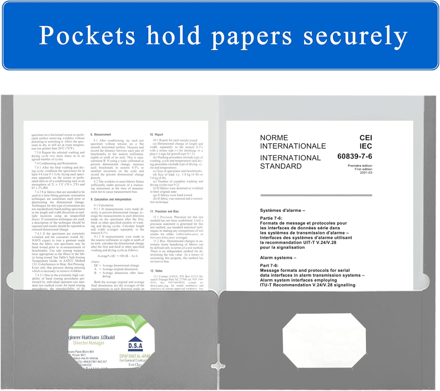 - COST EFFECTIVE: Presentation folders feature grey paper for professional-quality presentations, plus school-grade folders are stylish and storage-friendly, featuring each plastic pocket folder that is flexible, durable, easy to clean, and water-resistant.