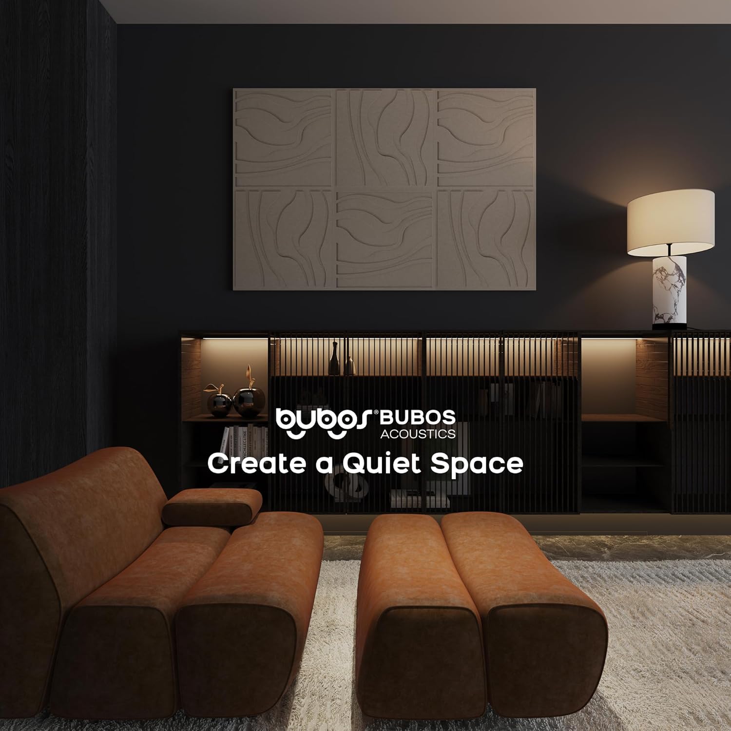 BUBOS Large Acoustic Panels, 6-Pack Soundproof Wall Panels Thickened 23.6 x 23.6 Inches, Self-adhesive Sound Absorbing Panels Decorative for Recording Studio Office Home Theater, Camel