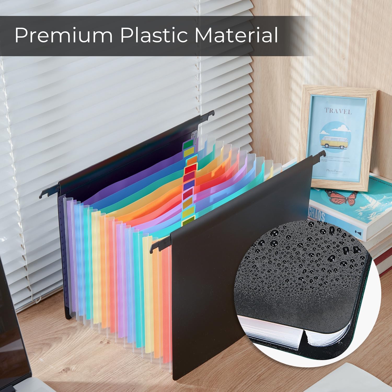 Y YOMA Legal Size - Plastic Expanding Hanging File Folders with 13 Accordion Pockets | Hook Removable Waterproof Extra Capacity for Bulky Files in School Home Office, 2 Pack