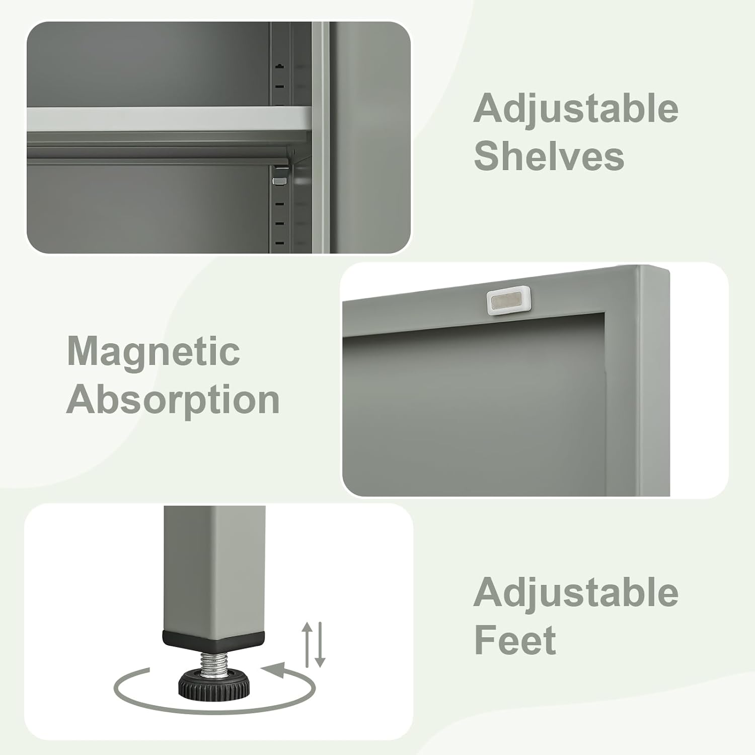 - 【Perfect storage space】Perfectly sized, compact, attractive and space-saving, this green metal cabinet measures 15.75"L × 13.78"W × 25.6"H, making it easy to move around any corner!