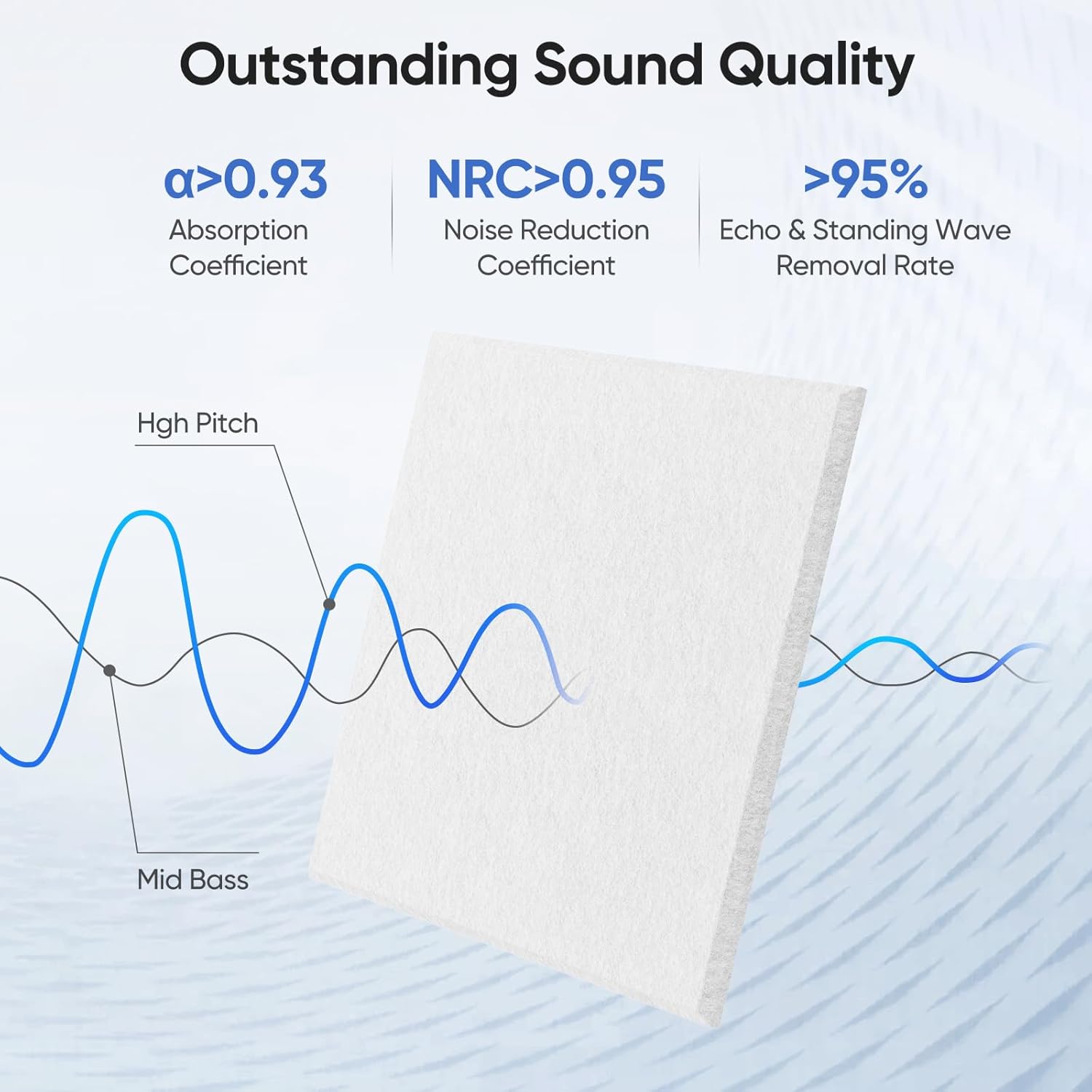 - Exceptional Sound Absorption -- Crafted with high-density polyester fiber (420 lb/m³), our acoustic panels achieve a sound absorption coefficient of up to 0.95, effectively minimizing echoes and reducing background noise for a comfortable environment.