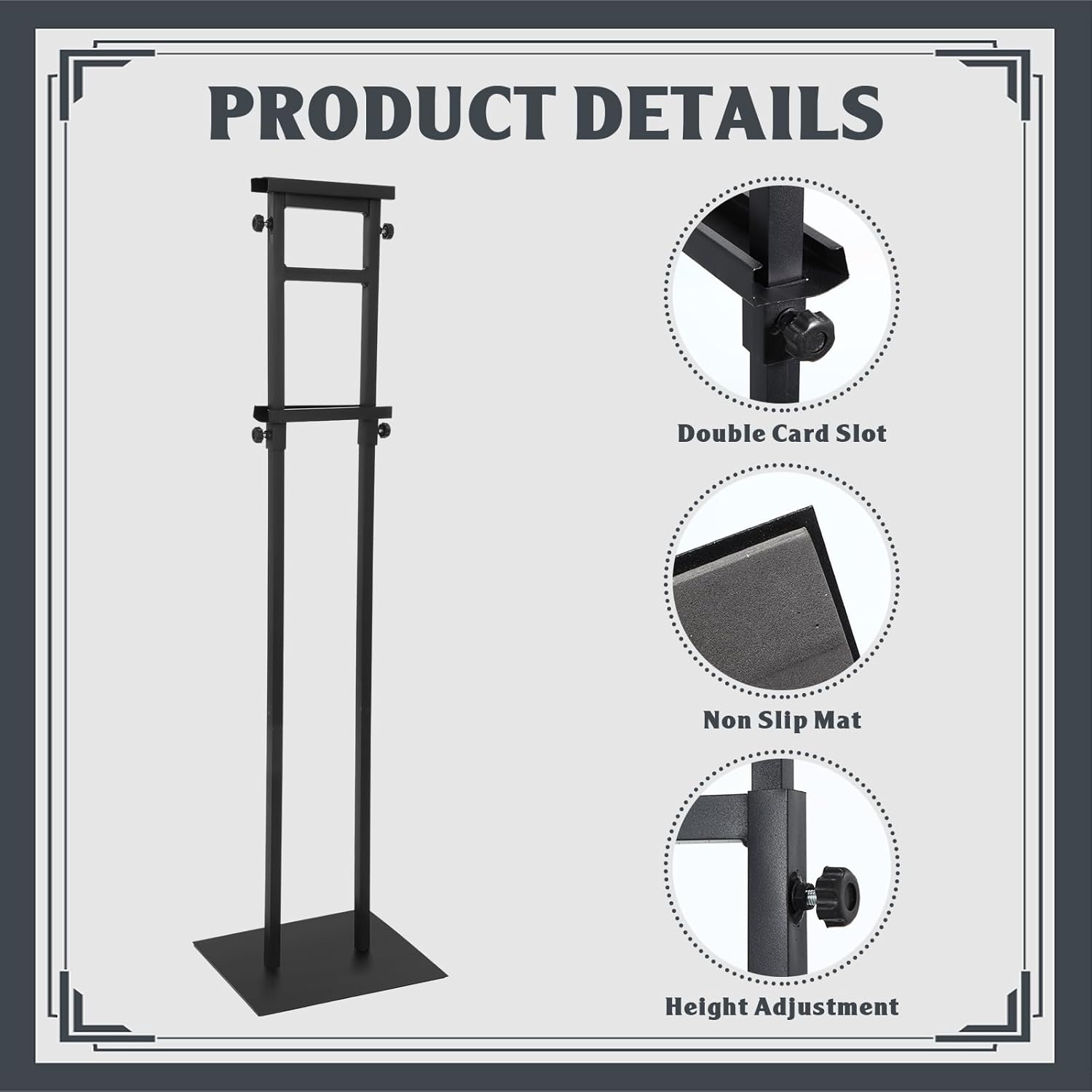 - Solid Base: this poster stand for display has 11.8 x 9.5 inches square thick base, strong, long lasting and rust resistant; Coming with a high density foam sheet with non slip pads, the base can enhance stability and protect the floor from wearing and tearing, suitable for indoor and outdoor displays