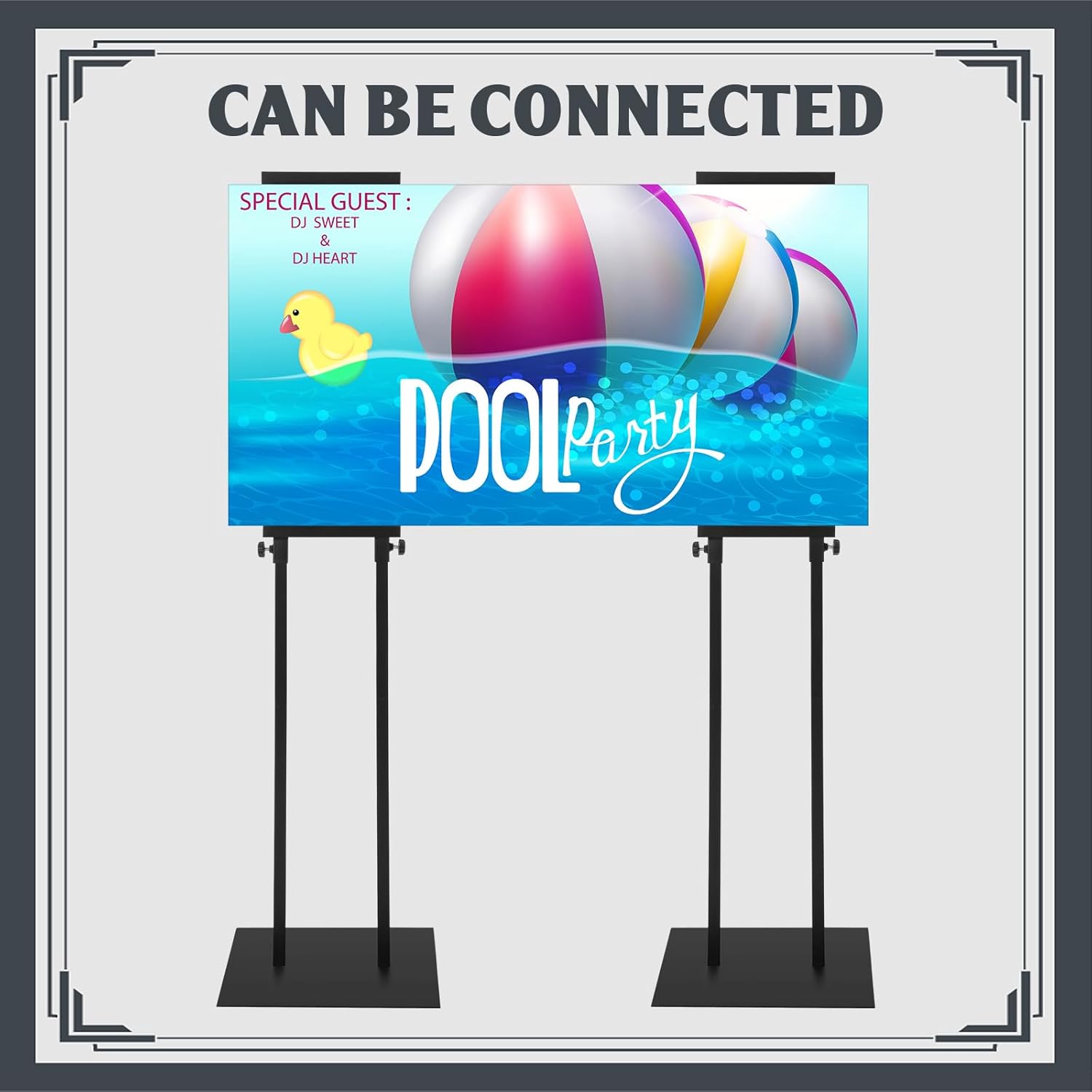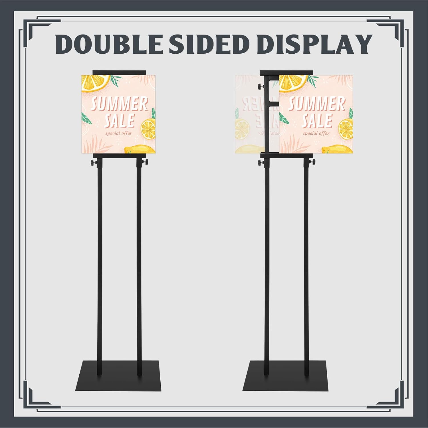 - Multiple Display: this sign holder floor stand featuring a double sided KT board design allows you to showcase your content on both sides, attracting more attention and seizing opportunity; You can also hang a larger and wider size billboard by connecting 2 or more poster holders, increasing the opportunity to display products