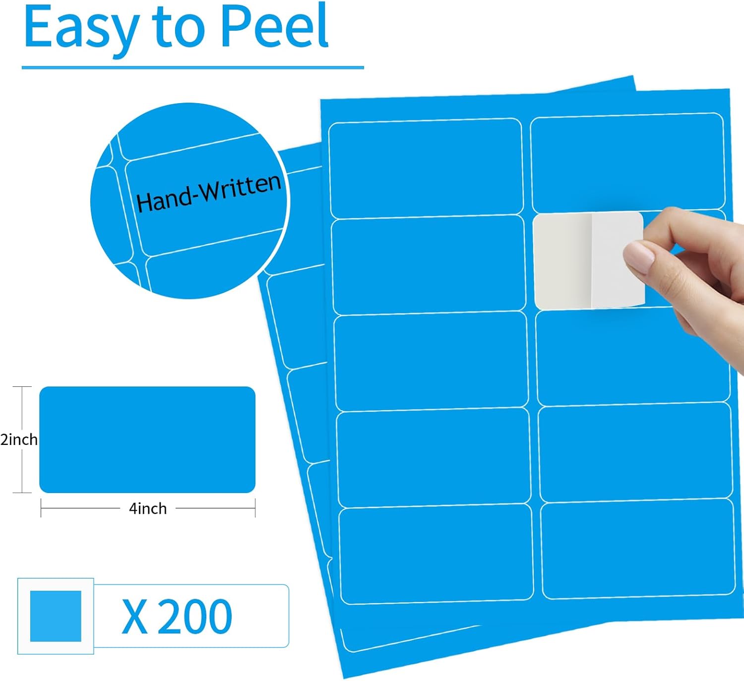 - Label Size: Matte Blue-2" x 4", Sheet Size: 8.5" x 11". 20 sheets, Totally 200 labels