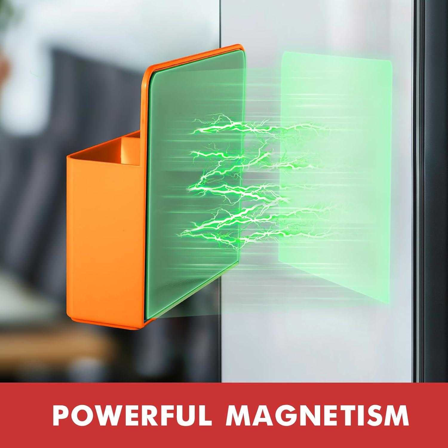 BEYGORM 2 Pack Plastics Magnetic Pen Holder for Refrigerator, Dry Erase Marker Holder for Whiteboard,Magnet School Locker Organizer Accessories, Pencil Cup, Pen Caddy, Classroom Organization(Orange)