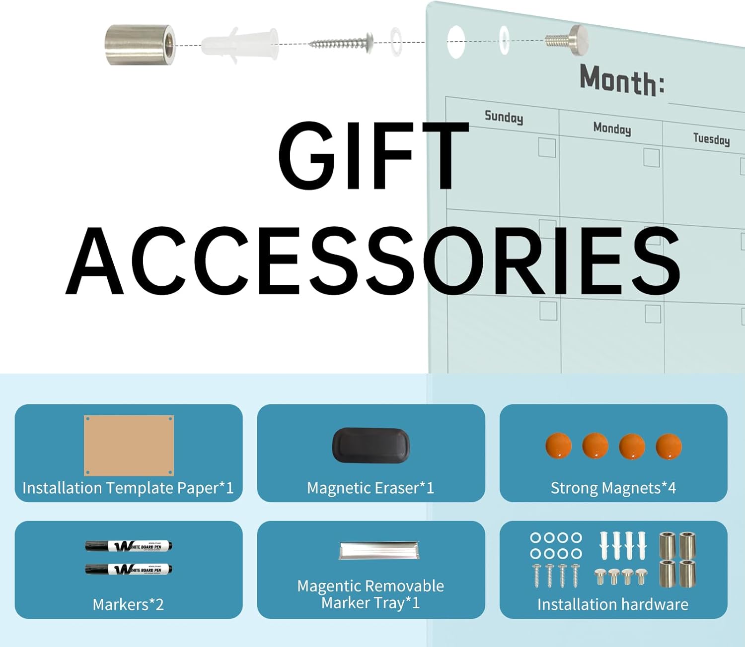 Magnetic Glass Dry Erase Board Calendar- White Board 48 x 36 Inch Wall Mounted Monthly Whiteboard, Large Frameless Glass White Board for Wall Office, Home & School