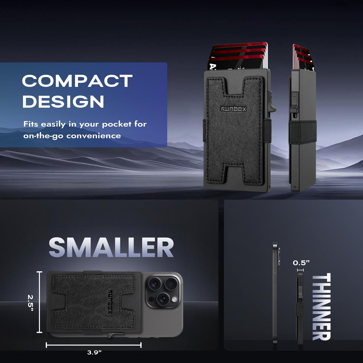 - SLIM WALLET FOR MEN with Ultra Thin & Lightweight Design: At just 0.5" thick and 2.6oz, this minimalist tactical wallet slips seamlessly into any pocket. Dimensions: 3.9"x2.5" – perfect for discrete everyday carry. The innovative expandable backplate adds storage without bulk, letting you ditch oversized wallets