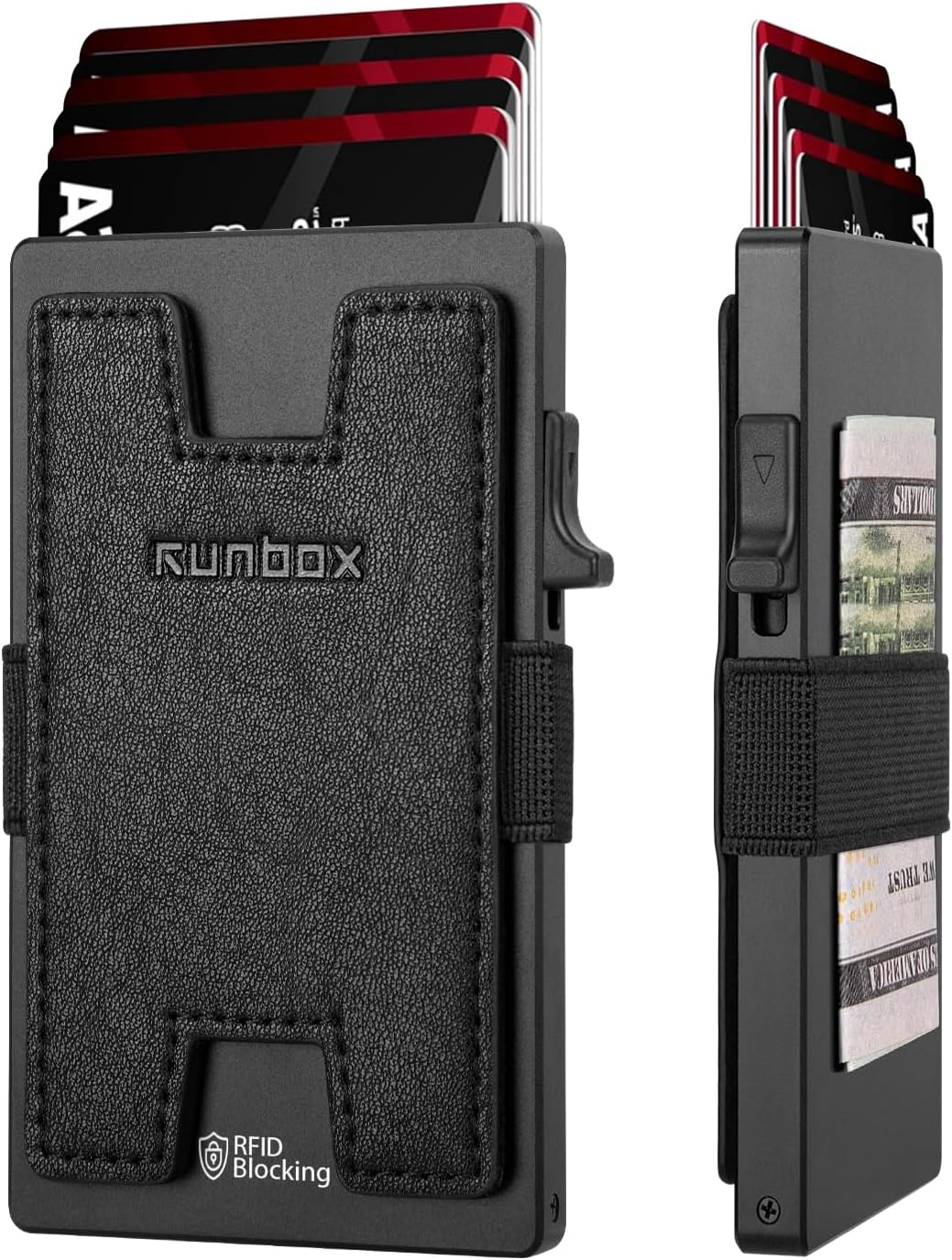 - Quick Access & Expandable Capacity (Holds 1-12 Cards): Experience effortless card access with our patented pop-up button mechanism – press to instantly eject cards. The main aluminum card holder compartment holds 4-6 cards(depending on embossed designs), while the expandable metal backplate adds 6-8 extra slots. *Total capacity varies with card thickness