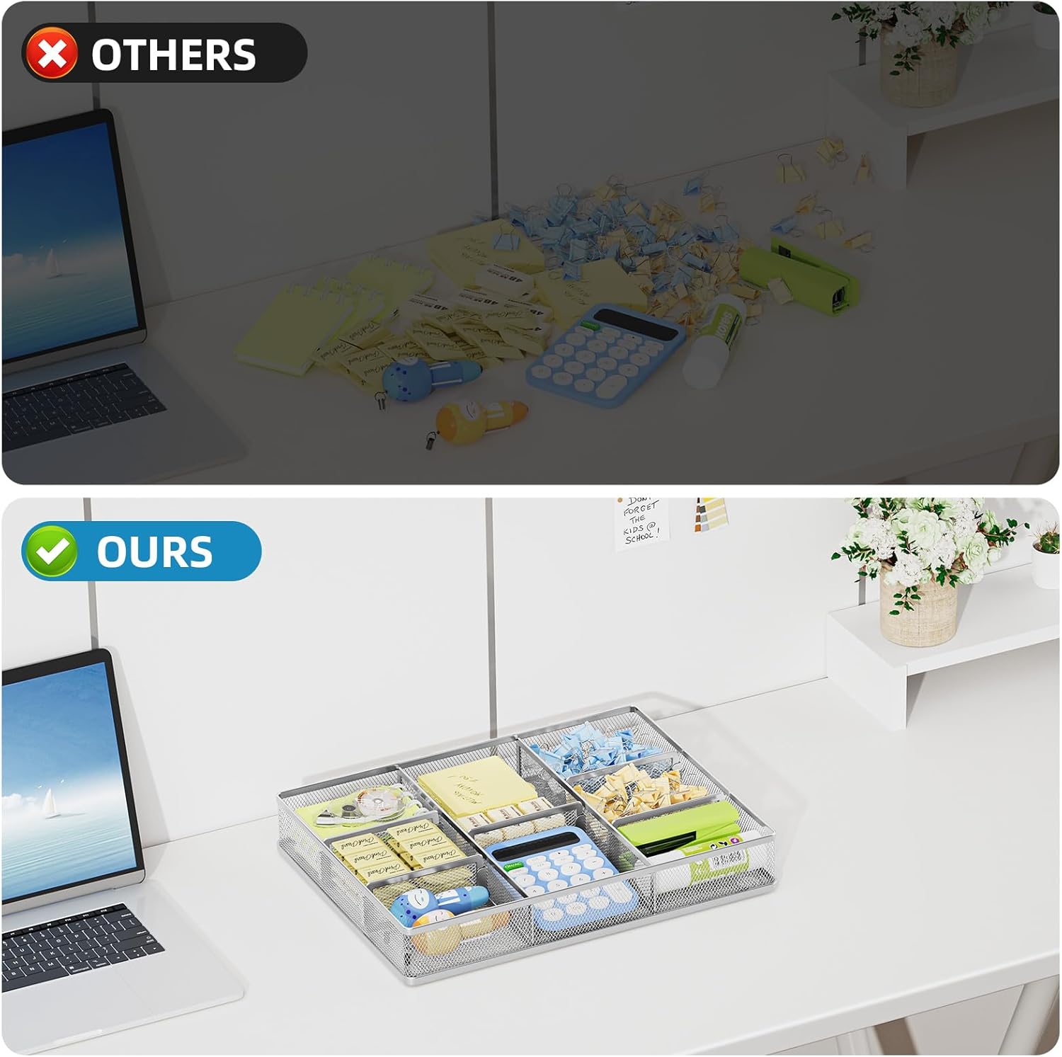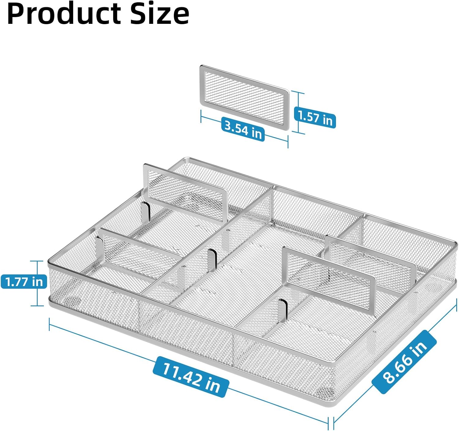 - Sturdy and Durable: Made of strong wire mesh with a powder-coated finish that is smooth, corrosion-resistant, and built to last. Non-slip feet keep the organizer stable and in place.This practical desk drawer organizer also makes a perfect gift for your family and friends.