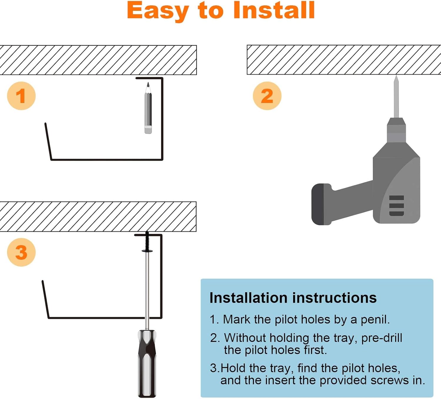 - STURDY DESIGN - This cable management under desk trays are built with metal material, these cable trays are super- sturdy and extra-durable and also can easily hold up to15lbs, if installed properly and come with 20 screws that improve stability and keep your devices and office supplies free from damage.