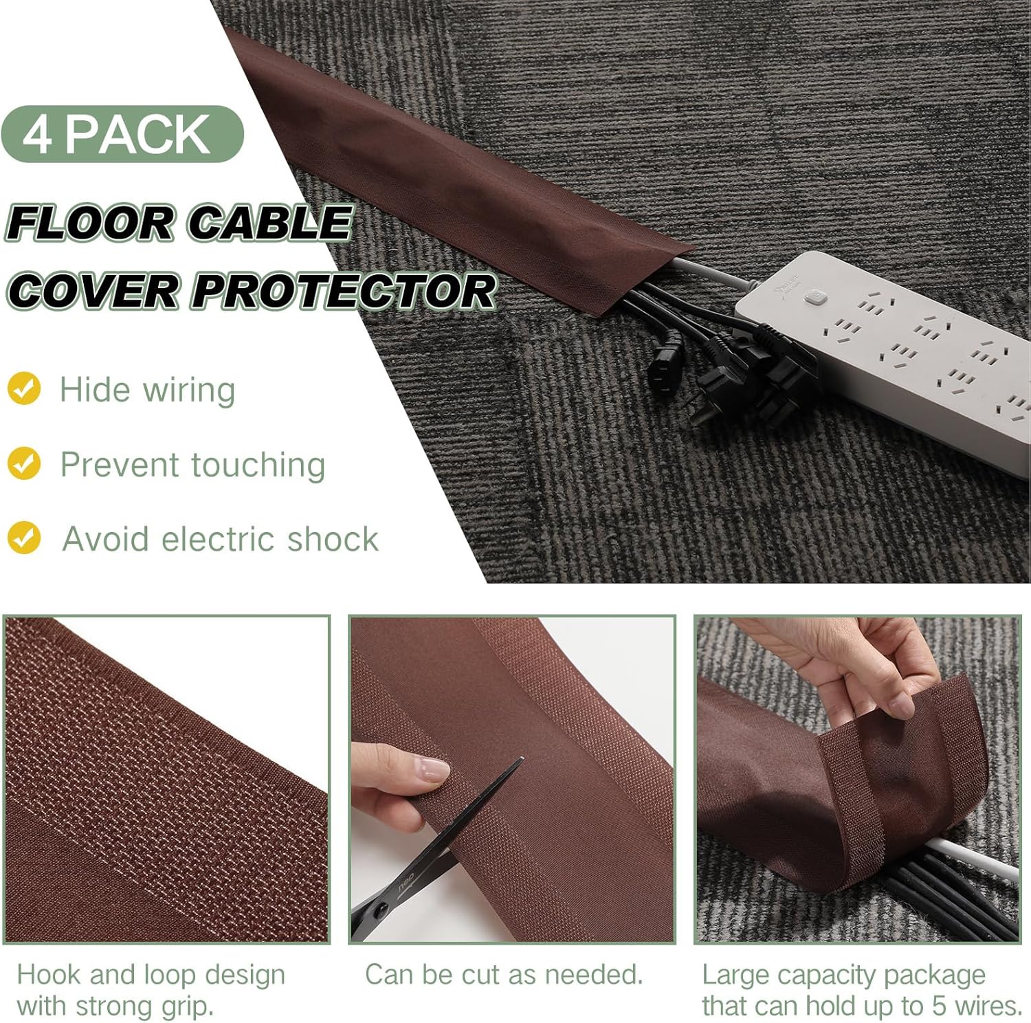 WILLBOND Grip Floor Cable Cover Cords Protector Management Only for Commercial Office Carpet(39.37 ft,Brown)