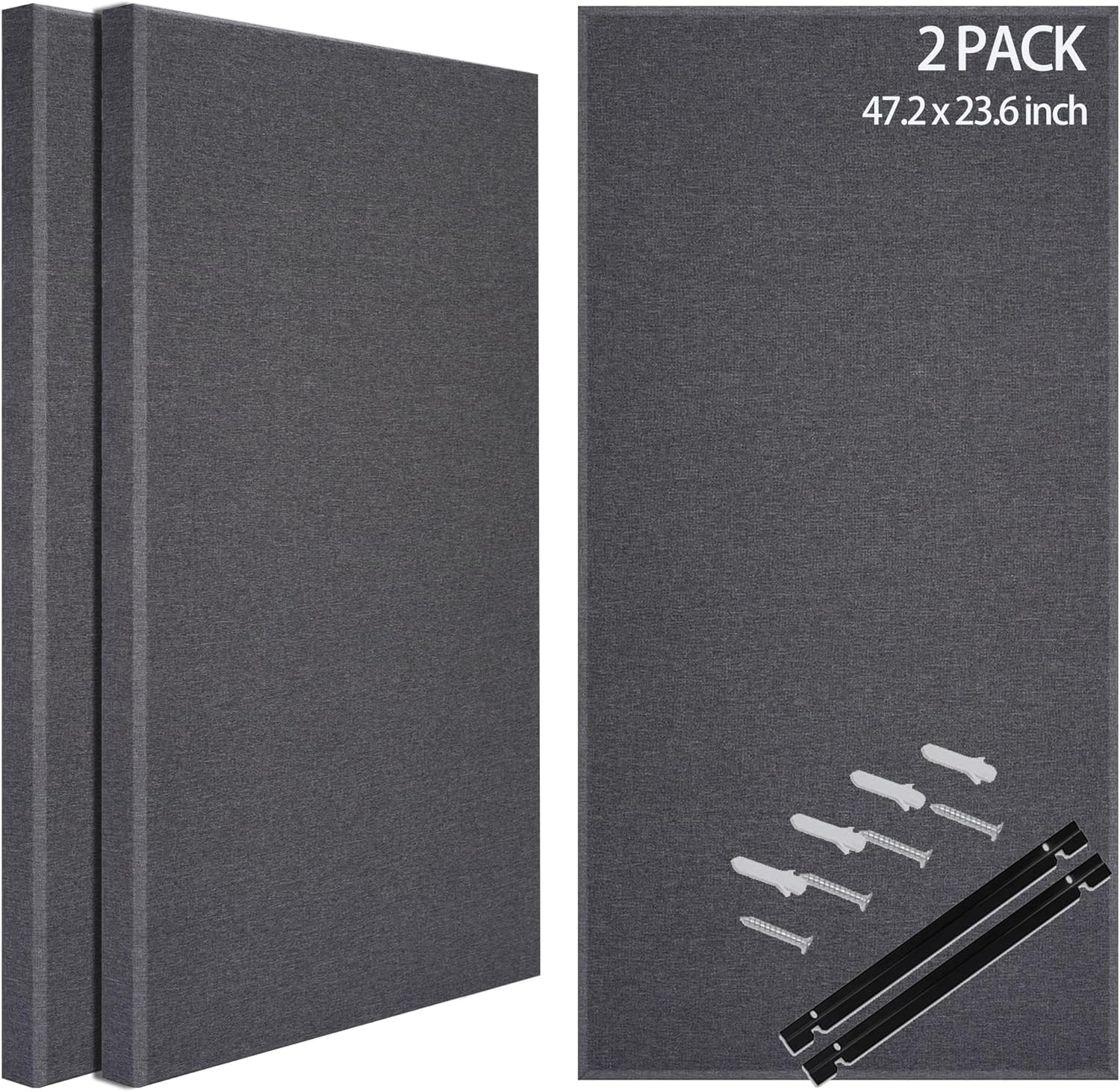 BUBOS 2 PCS Fabric Acoustic Panels,47.2''x23.6'' DecorativeSound Dampening Panels, Art Large Acoustic Wall Panels for Studios, Office, Home Theater,Super CavityPro Grey