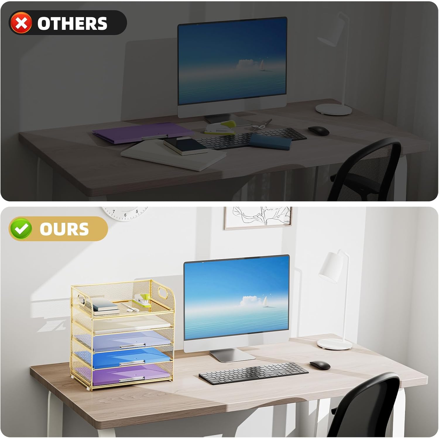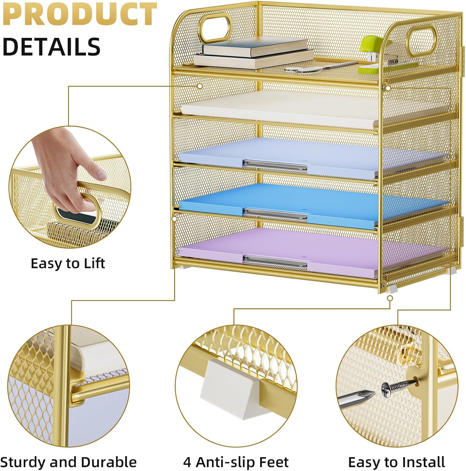 - 【PREMIUM QUALITY】The mesh desktop file organizer is made of lightweight durable metal mesh and reinforced with a solid steel frame that makes it have long-lasting strength and reliable performance.