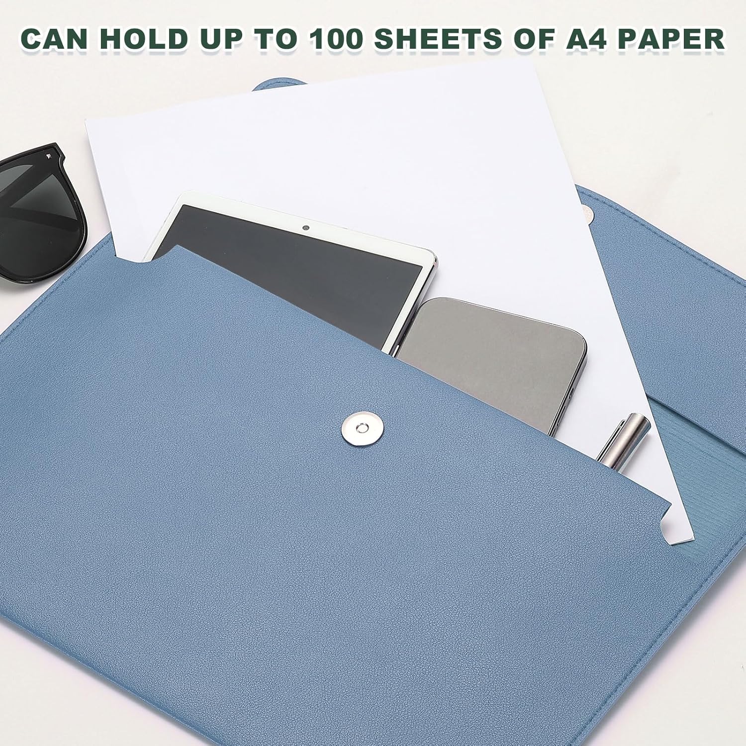 - Advantage: The PU leather material offers a luxurious look and feel. The document folder is easy to clean and maintain, ensuring that it retains its pristine appearance over time. Equipped with a secure snap button closure mechanism, the file folder ensures that your documents remain safe and protected during transport or storage.