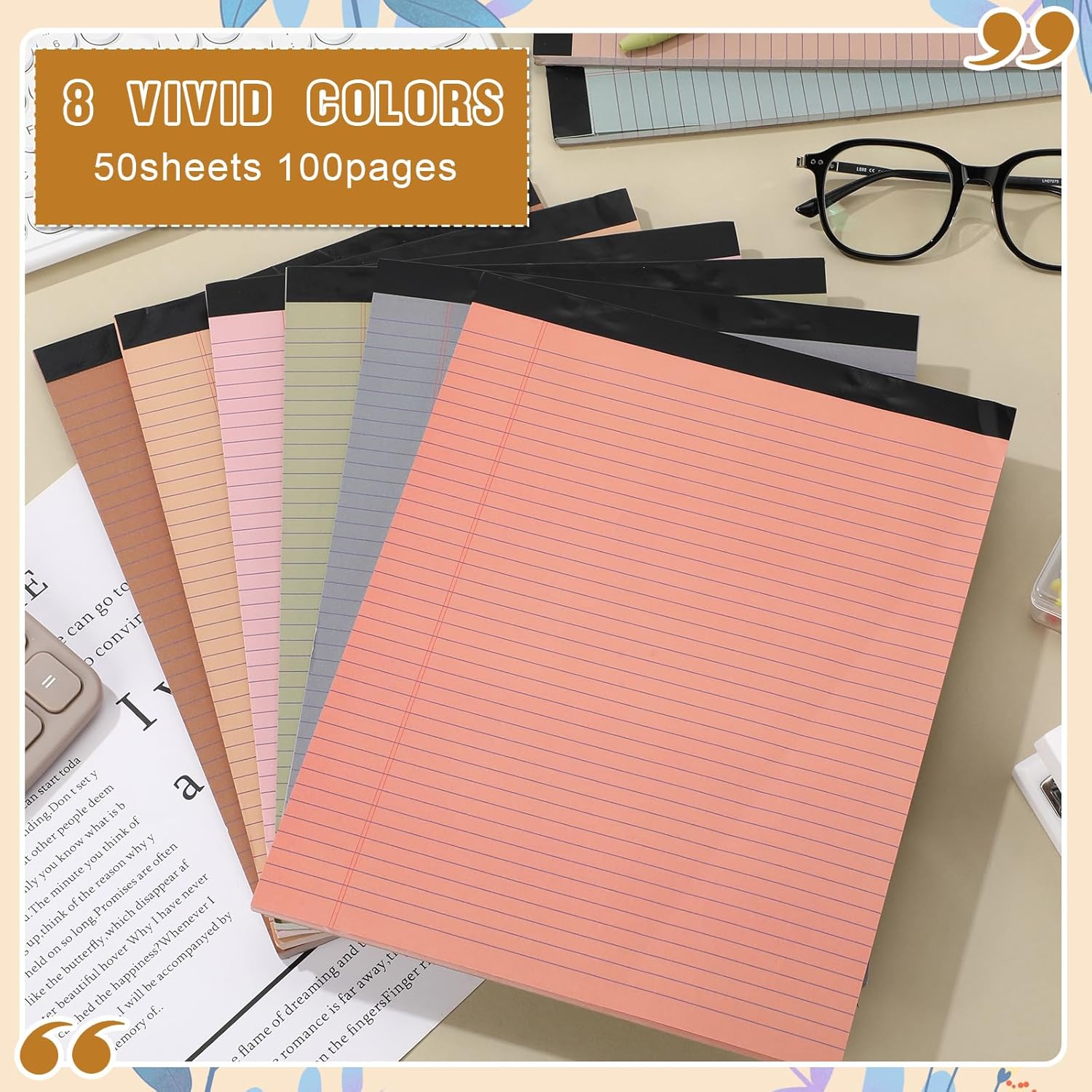 Fuutreo 8 Pcs 8.5'' x 11'' Colored Legal Pad Writing Pads Narrow Ruled 50 Sheets Per Notepad Perforated Writing Notepad Office Supplies for College Office Business (Advanced Grey)