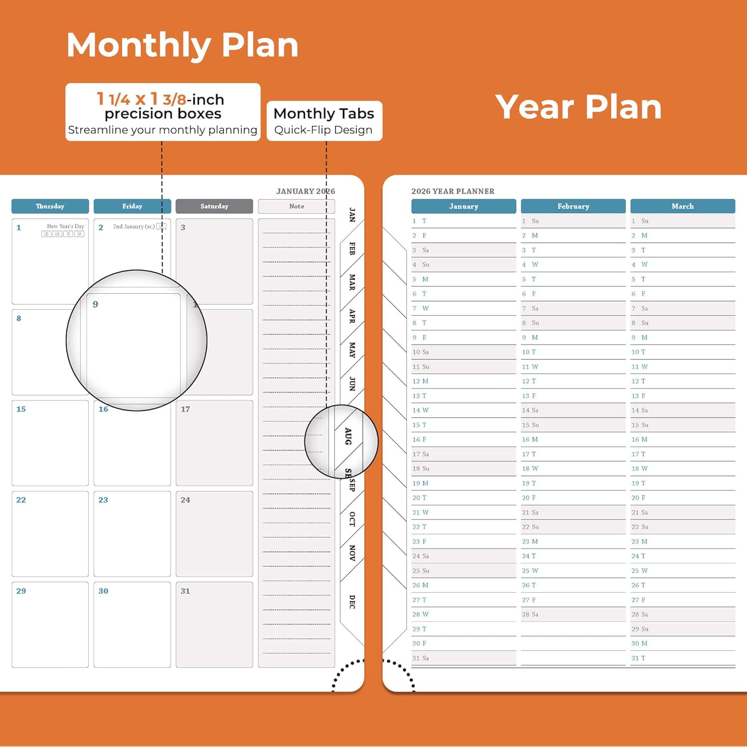 - Great Material for Weekly Planner: Crafted with FSC-100gsm thick paper that resists ink bleed and daily wear, this 2026 planner ensures smooth writing with markers while gentle on your eyes through its ivory white pages. The Vegan leather soft cover and reinforced lay-flat binding make it a calendar planner companion for busy professionals, students, and families
