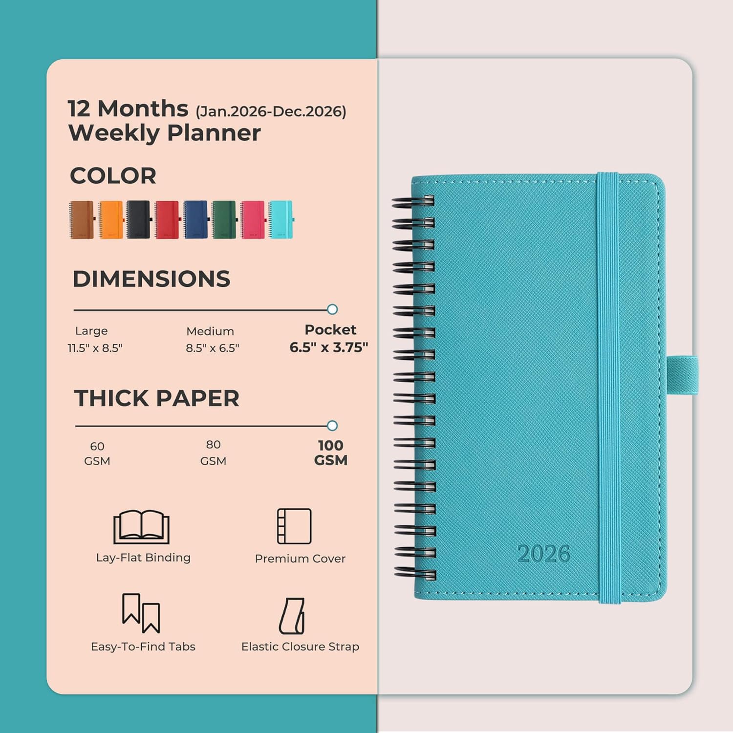 - Monthly Pocket Planner: Covers Jan.2026-Dec.2026. It adopts a double-page design for one week, so you can get a general overview without turning pages. The weekly planner page provides writing space for arrangement of daily tasks, priority management and activity records; the left side of the monthly plan marks important dates, and the right side plans special tasks