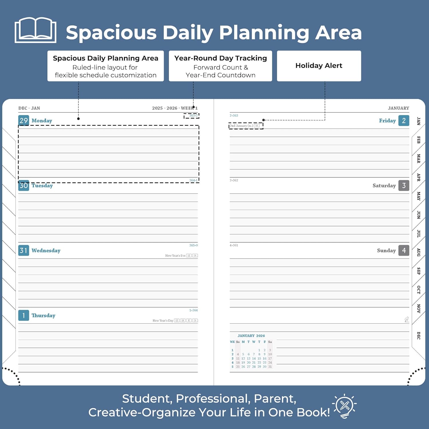 - Compatible 2026 Planner: Adaptable across lifestyles and roles. Professionals track workflows, conference logistics; students plan academic schedules, evaluations, and after-school; households manage vacation arrange & family activity
