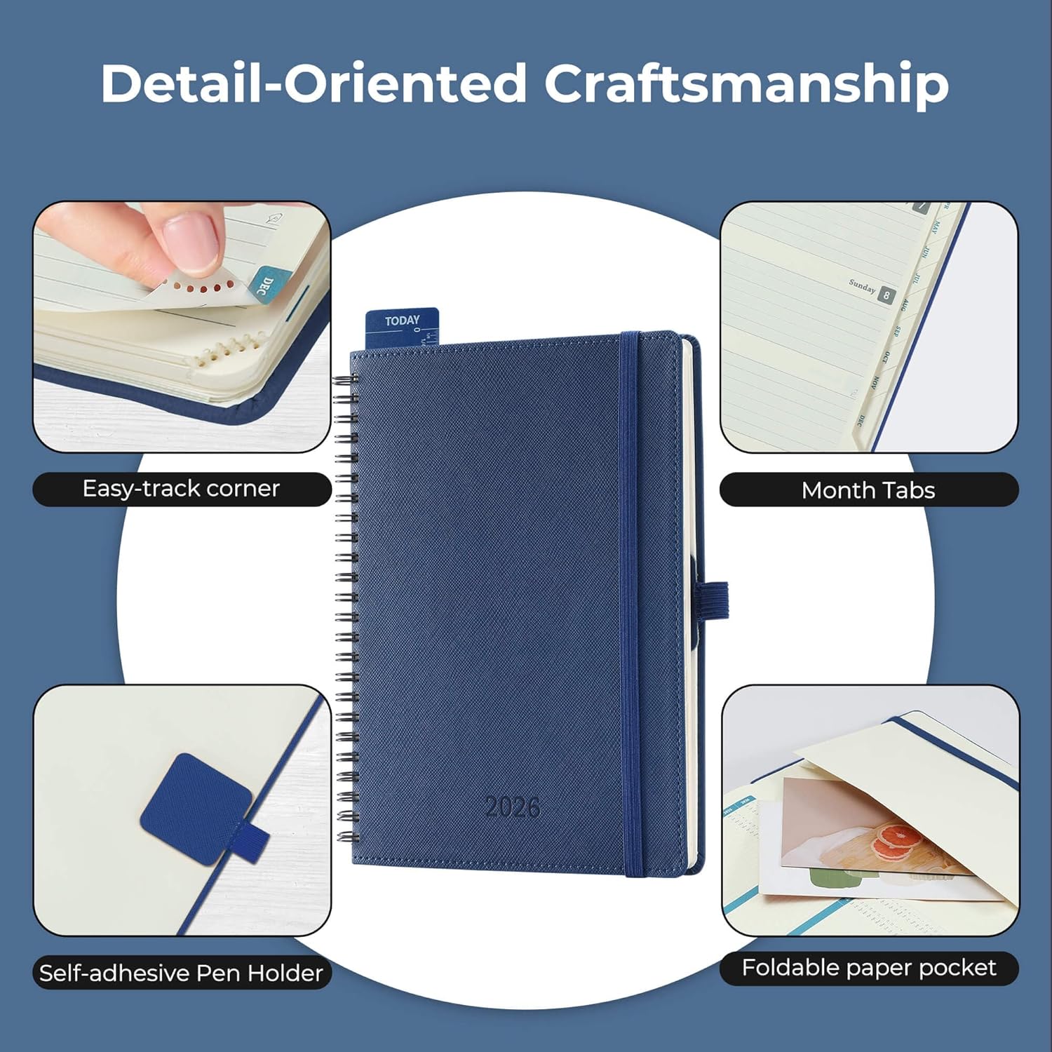 - Detailed Design: (Easy Find) The monthly tabs on the side of the academic planner can quickly locate the current date; the tear off design and bookmark rope make it easy to flip through the medium planner, mark and return to important pages. (Magic Pocket) The last page of the 2026 college planner has an expanded inner pocket that provides a small space for storage of cards