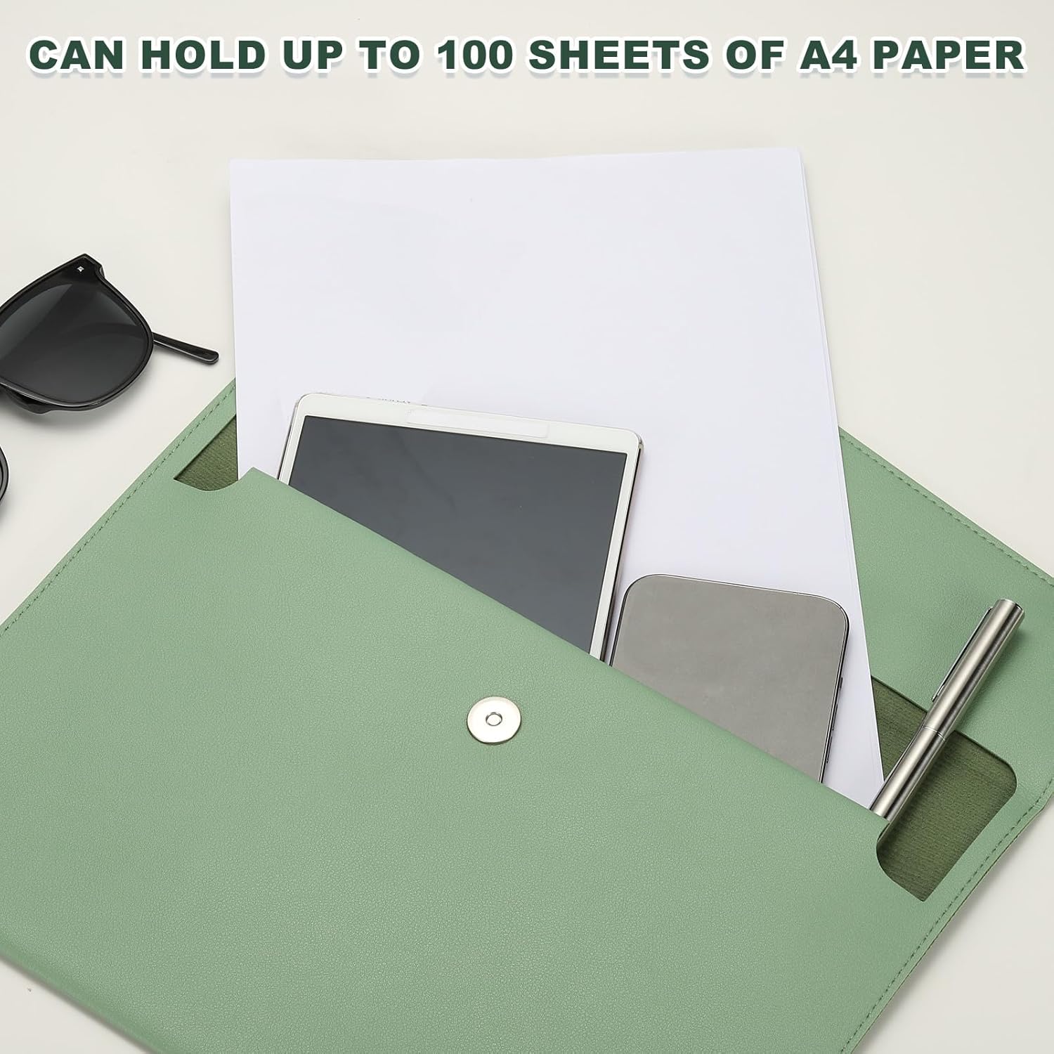 - Advantage: The PU leather material offers a luxurious look and feel. The document folder is easy to clean and maintain, ensuring that it retains its pristine appearance over time. Equipped with a secure snap button closure mechanism, the file folder ensures that your documents remain safe and protected during transport or storage.