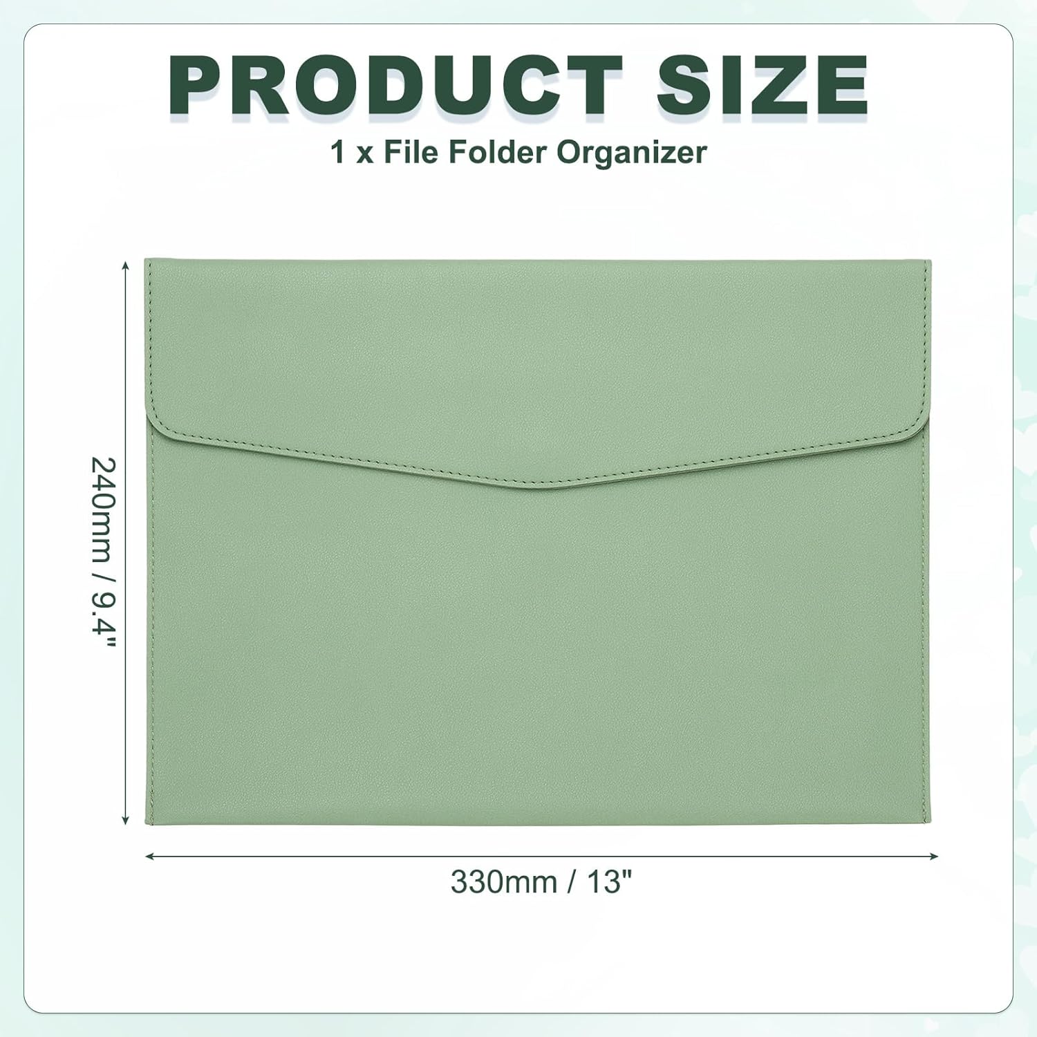 - Color: Green; Material: PU Leather; Size: 330 x 240mm / 13 x 9.4 inch(L*W); Packing List: 1 x File Folder Organizer