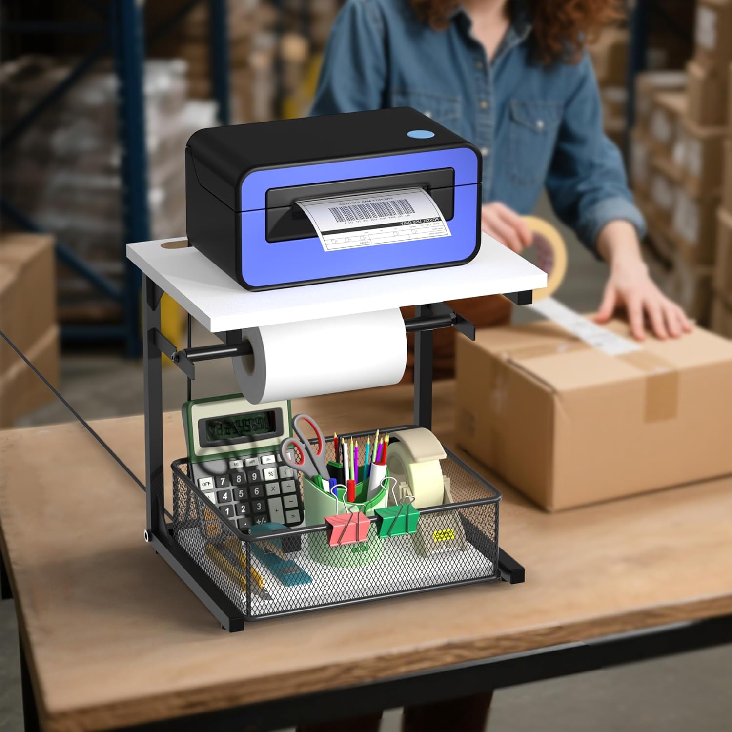 - ALL-IN-ONE DESIGN: Our label roll holder accommodates both thermal label printers and label rolls. The top shelf has holes on both sides to neatly hide the power cord. The bottom drawer is designed to be flexible, not only for storing printed labels, pens and other small items, but also for being pulled out and used individually as a desktop organizer for small office items