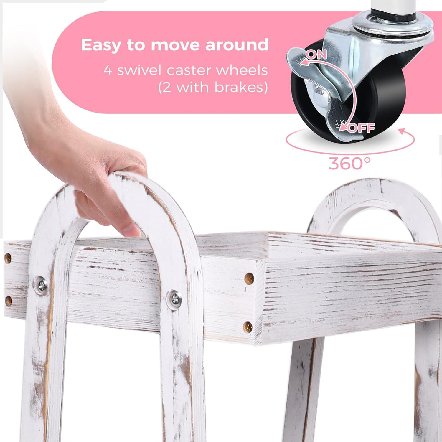 - 【Wide Usage】Wooden cart on wheels is easy storage and transportation as a art cart, bathroom cart, bar cart, craft cart,baby room cart,organization rack,serving cart, storage shelves, tools cart, etc.It is best gift of baby birthday,happy wedding anniversary ,baby shower souvenir gifts,bridal shower return gifts.