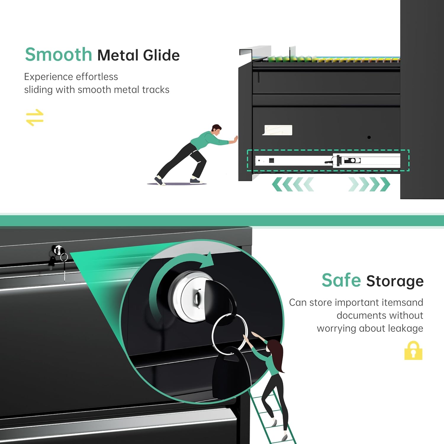 - ⤠Lockable File Cabinet -- Superday two drawer file cabinet uses an interlocking system, it locks all two drawers simultaneously and comes with two keys to protect your privacy and file security.Tips: 2 keys should be kept separately in case of losing. If you accidentally lose one key, another key can be used in case of emergency.