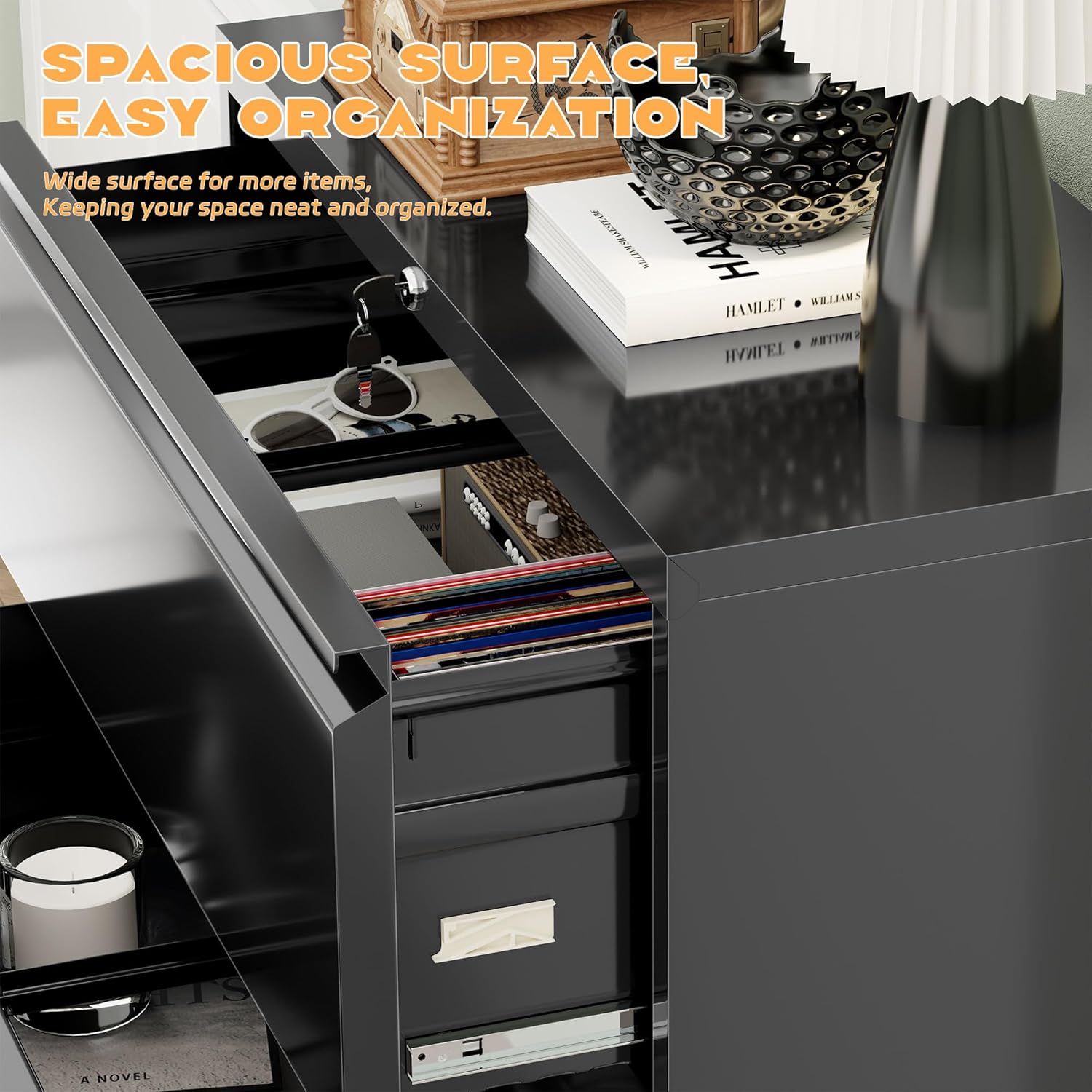 - ⤠Smooth & Quiet Operation -- The black file cabinet have smooth rolling bearing drawers, the drawers open and close effortlessly without jamming or noise. The sound produced when pulling the drawer is below 20 dB, which can create a quiet working environment for you.