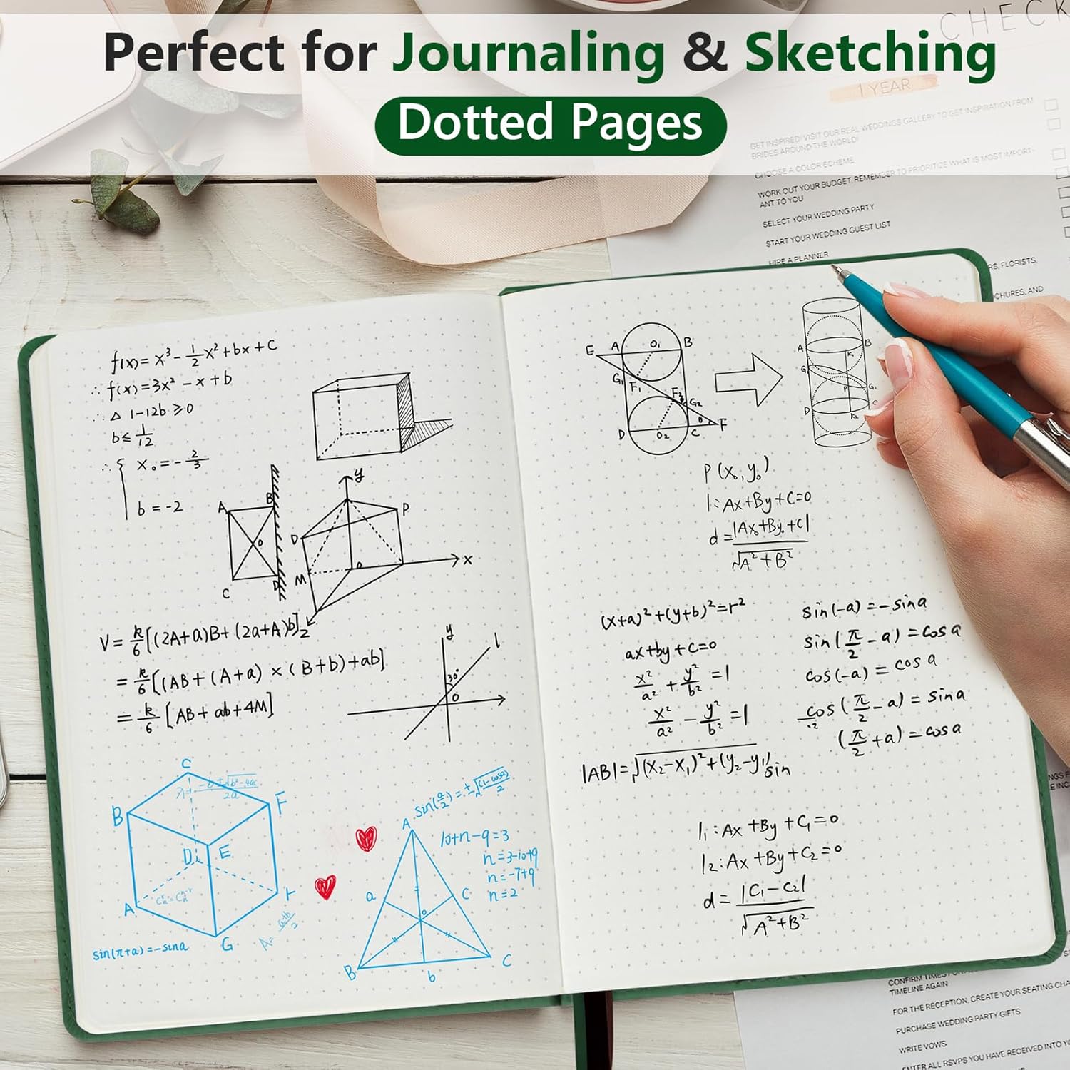 PERCUN Dotted Journal Notebook for Men & Women, 160 Pages Dot Grid notebook for Note Taking, Bullet Journaling Notebook for Work, School, Travel, Writing, A5 Hardcover 5.9" x 8.5"(Green)