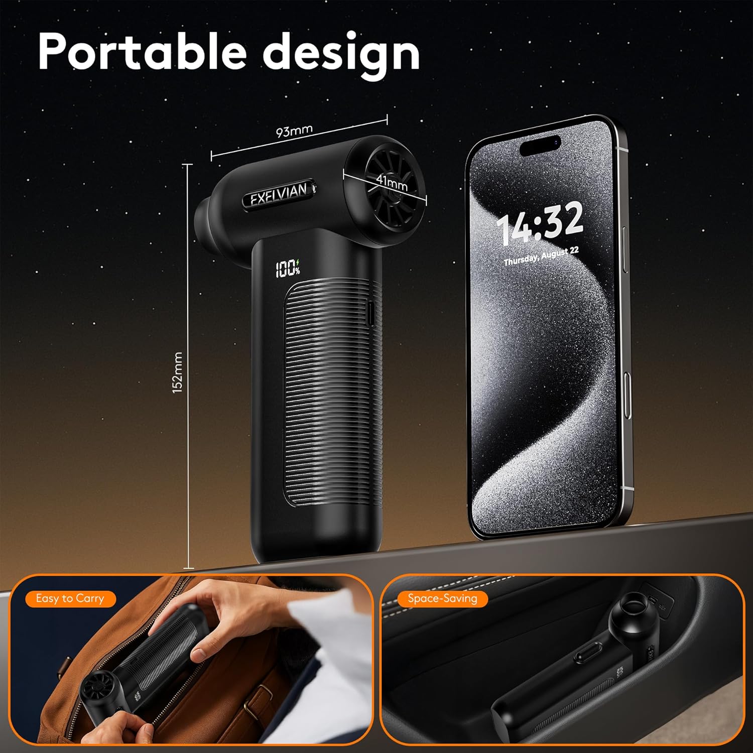 - 【Rapid 2.7-Hour Charge】The air duster supports Type-C charging, achieving a full battery in just 2.7 hours. Once charged, it delivers up to 100 minutes of continuous runtime on the first speed setting. With 4 versatile charging modes, it caters to on-demand power needs—ideal for indoor or outdoor use.