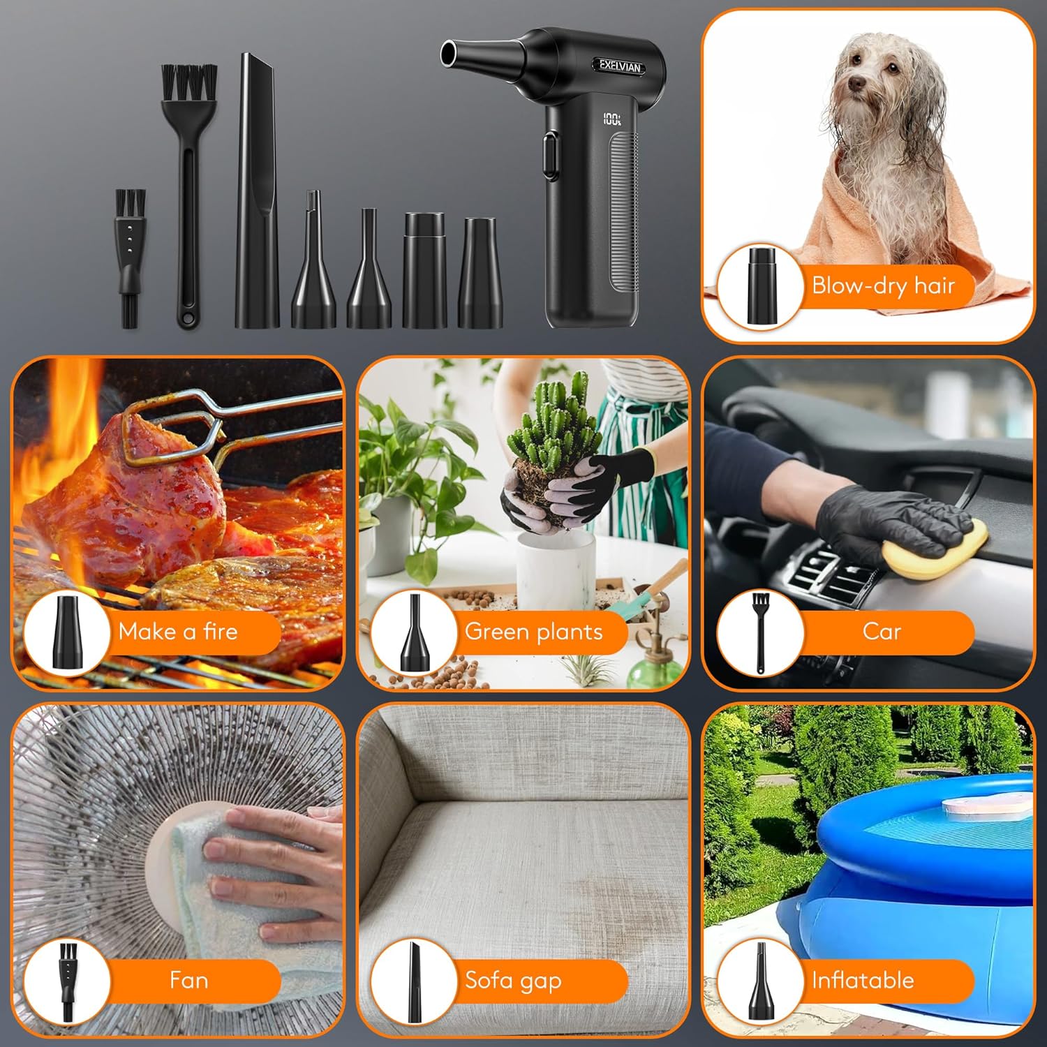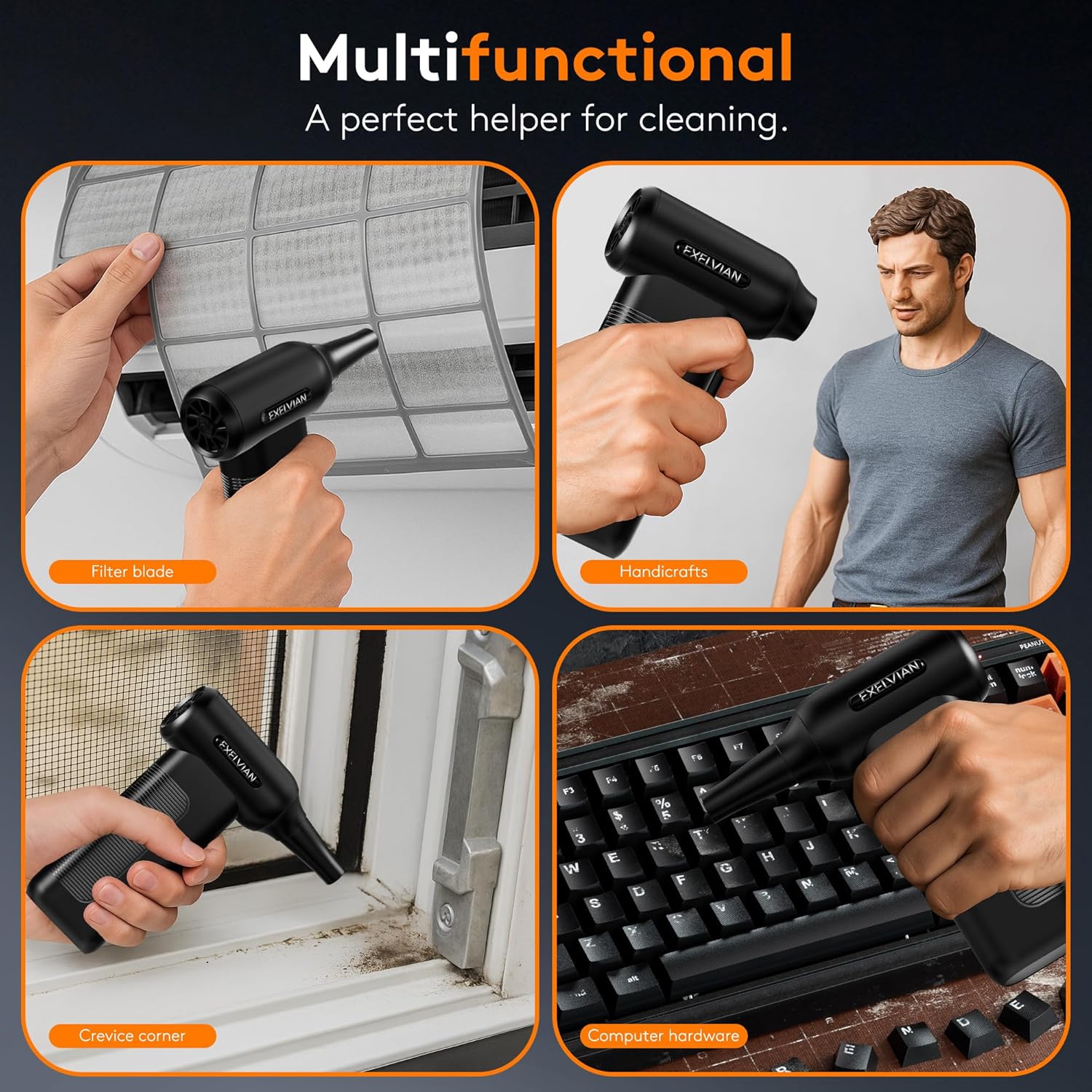 - 【150,000 RPM & 6 Gear】The air duster reaches up to 150,000 RPM. This enables effective removal of dust and debris. Additionally, it features 6 adjustable speed settings to meet diverse cleaning needs.