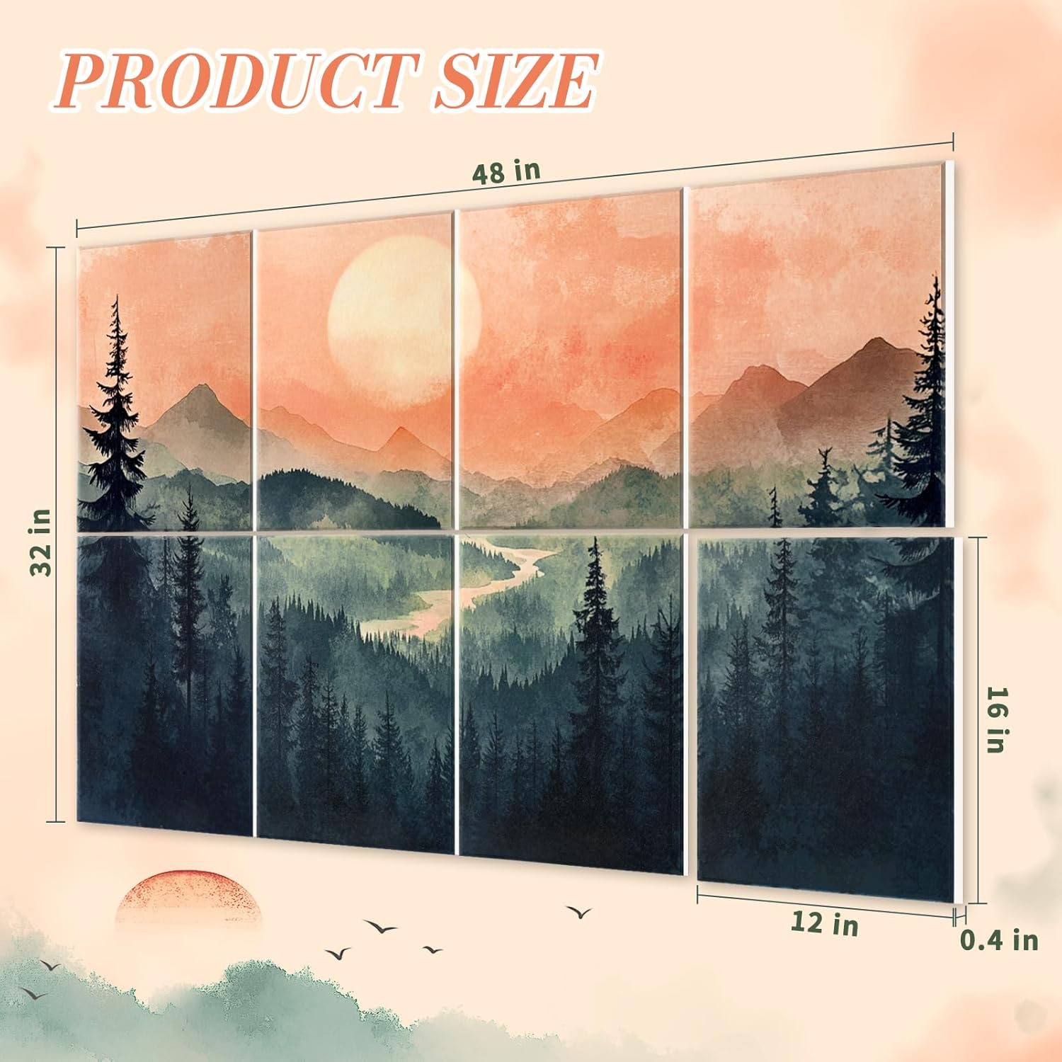 - AESTHETIC SPACE DESIGN: The design of this soundproof panel allows you to feel the state of sunrise and sunset, with the sun's rays reflecting on the layers of forests, mountains, rivers, and the dim yellow color tone resembling both the rising sun and the afterglow of the setting sun.