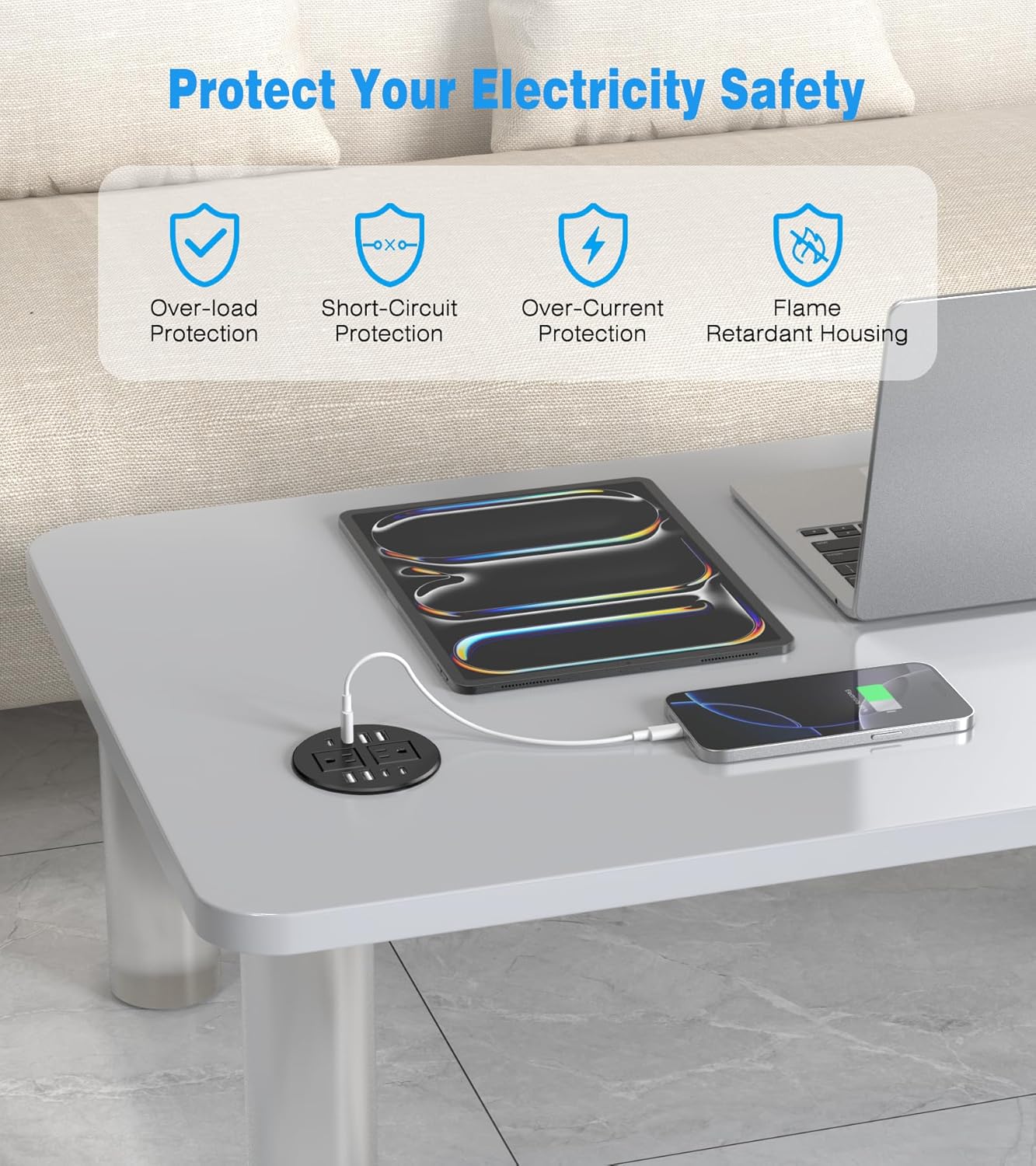 - Fits Standard 3.15 Inch(80mm) Cable Holes: Suitable for all types of desks and countertops, including coffee tables and workspaces. The compact design ensures flexible installation, keep your workspace neat and organized by getting rid of bulky adapters and tangled cords. Perfect for charging multiple devices in homes, offices, or schools.