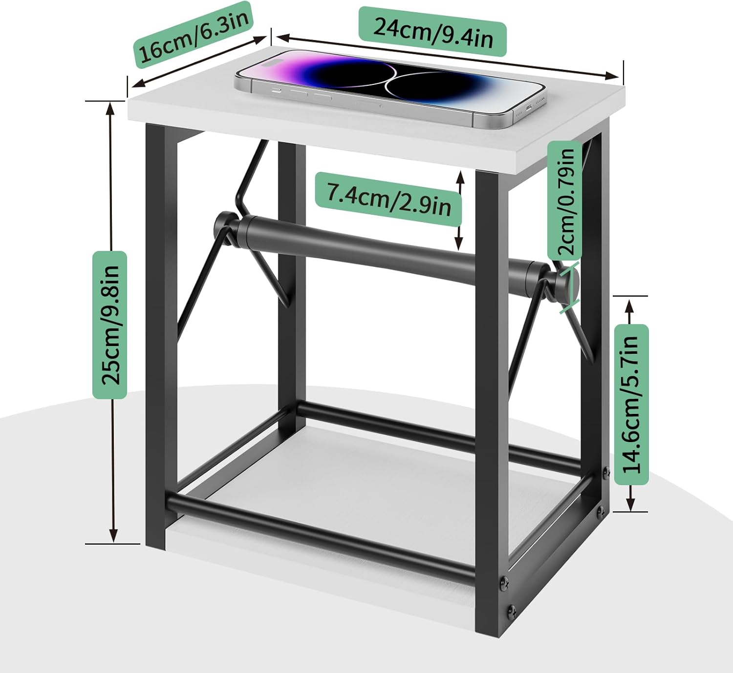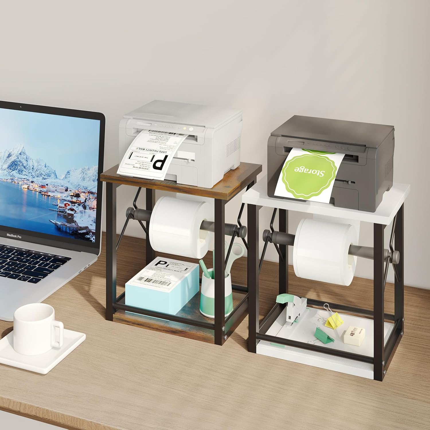 - ăCompact Double-Layer Space SaverăSave up to 70% desk space with this vertical design thatâs ideal for small business label printer setups and desktop home office printer organizer needs. Declutter Your desk instantly with this elegant printer stand for labels in a bright white finish.