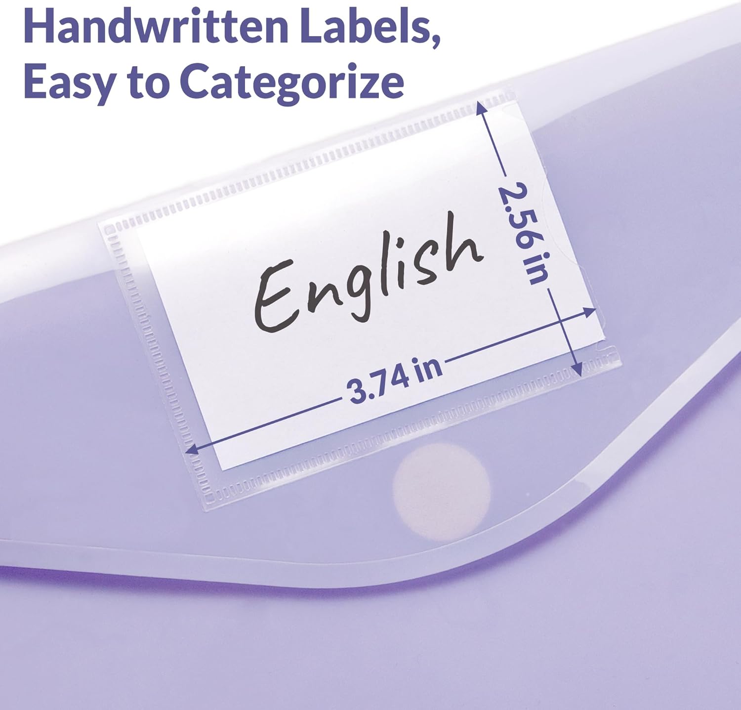 - Colored File Folders: 24 pack of plastic pocket folders features six elegant macaron shades: Pink, Yellow, Lavender, Green, Blue, and Clear. The professional 9.25"x13.25" size fits A4/Letter paper. With reinforced closure and an exterior label pocket, these plastic file folders letter size protect documents. Please Note: Label cards not included