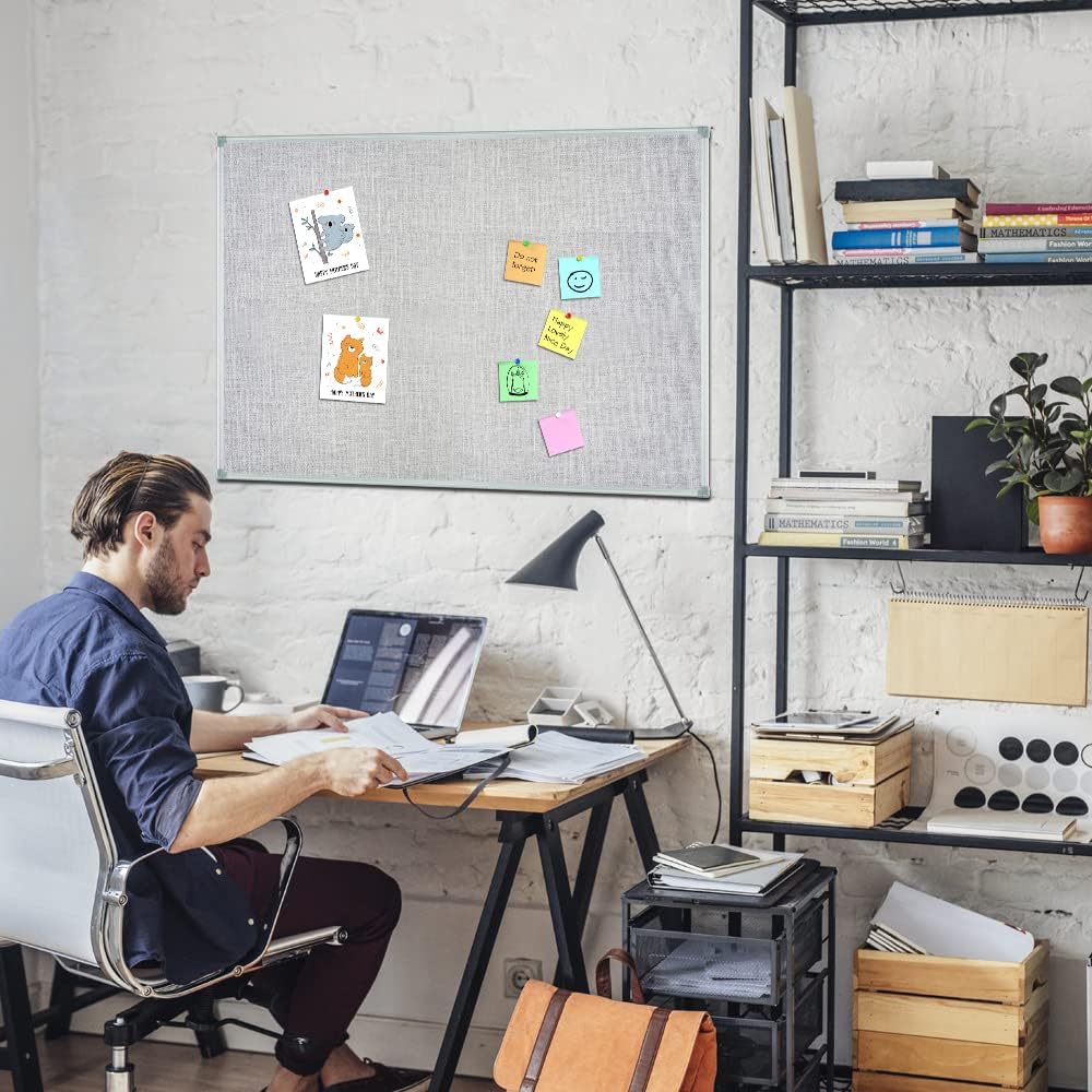 - Light Grey Bulletin Board(35.8 x 24 Inch):Premium Fabric Pin Board with Aluminum Frame for Notes, Photos & Memos. (Easy Wall Mounting Included)