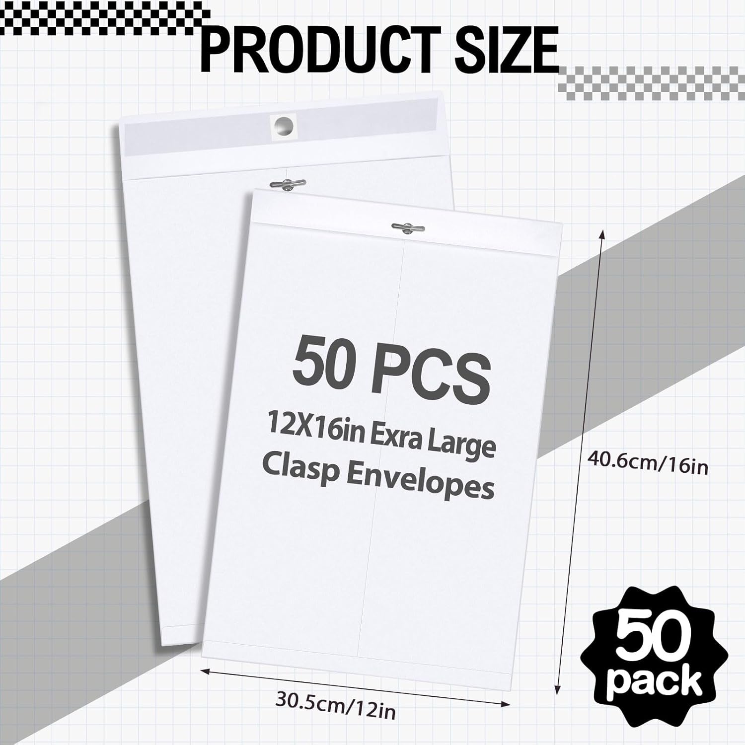 Geyee 50 Pcs 12 x 16 Inch White Manilla Clasp Envelopes Letter Size Mailing Envelopes with Clasp Closure for Filing Storing Documents Office Home Business School