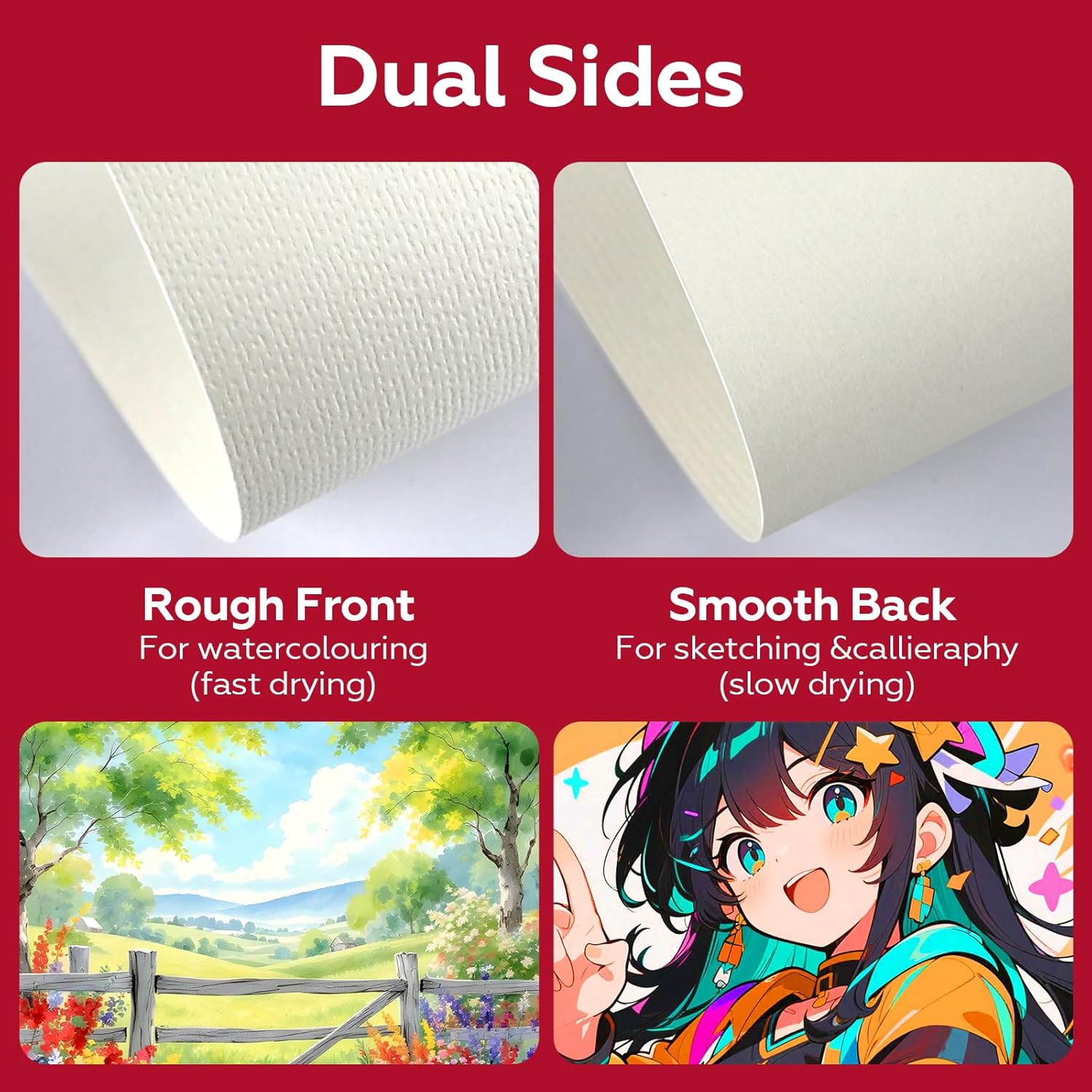 - 【Premium Paper】joibabe watercolor paper It made of 300g cotton paper, watercolor paper feature good water absorption, serviceable and reliable, smooth in surface. our water color paper has good texture, suitable for painting, sketching, etc