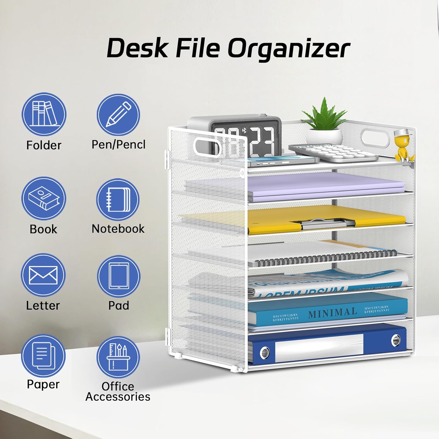 - 7-Tier Desktop File Organizer:Our desk organizer features a spacious seven-tier structure design, perfectly accommodating letters, A4 documents, books, bills, and various other items. Its large-capacity compartment design keeps frequently used items within easy reach, helping you effortlessly enhance work efficiency.
