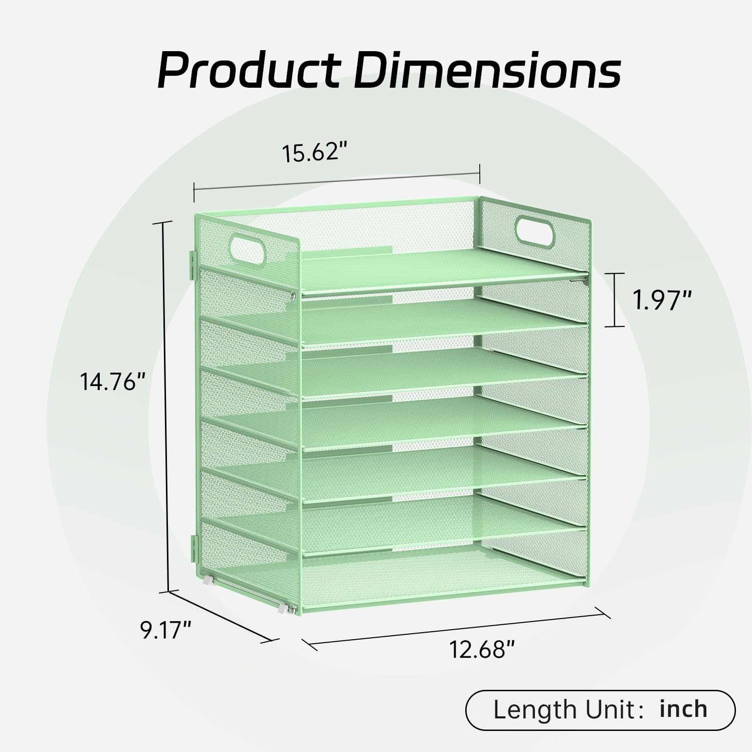 7 Tier Paper Organizer - Mesh Desktop File Holder with Handles for Office School Desk, Black (Mint green)