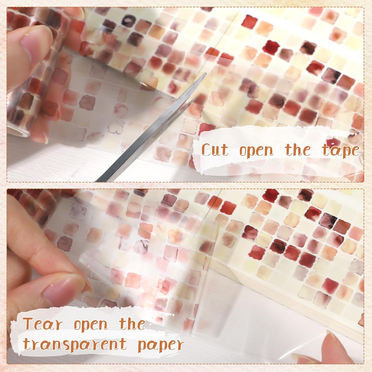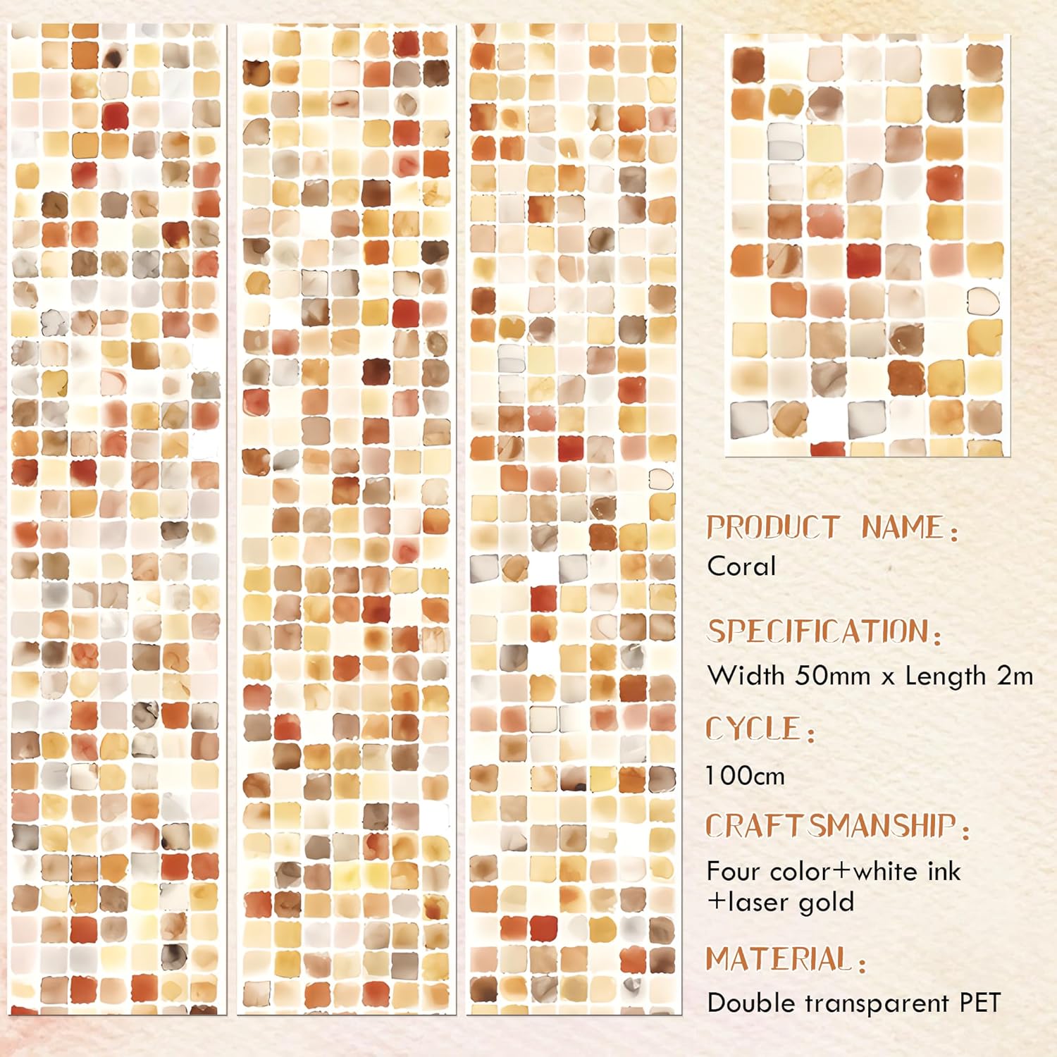 - Elegant Mosaic Pattern: These PET tapes display a colorful mosaic design with warm earthy tones and subtle variations, adding a touch of artistic sophistication and visual interest to journals, albums, and card decorations