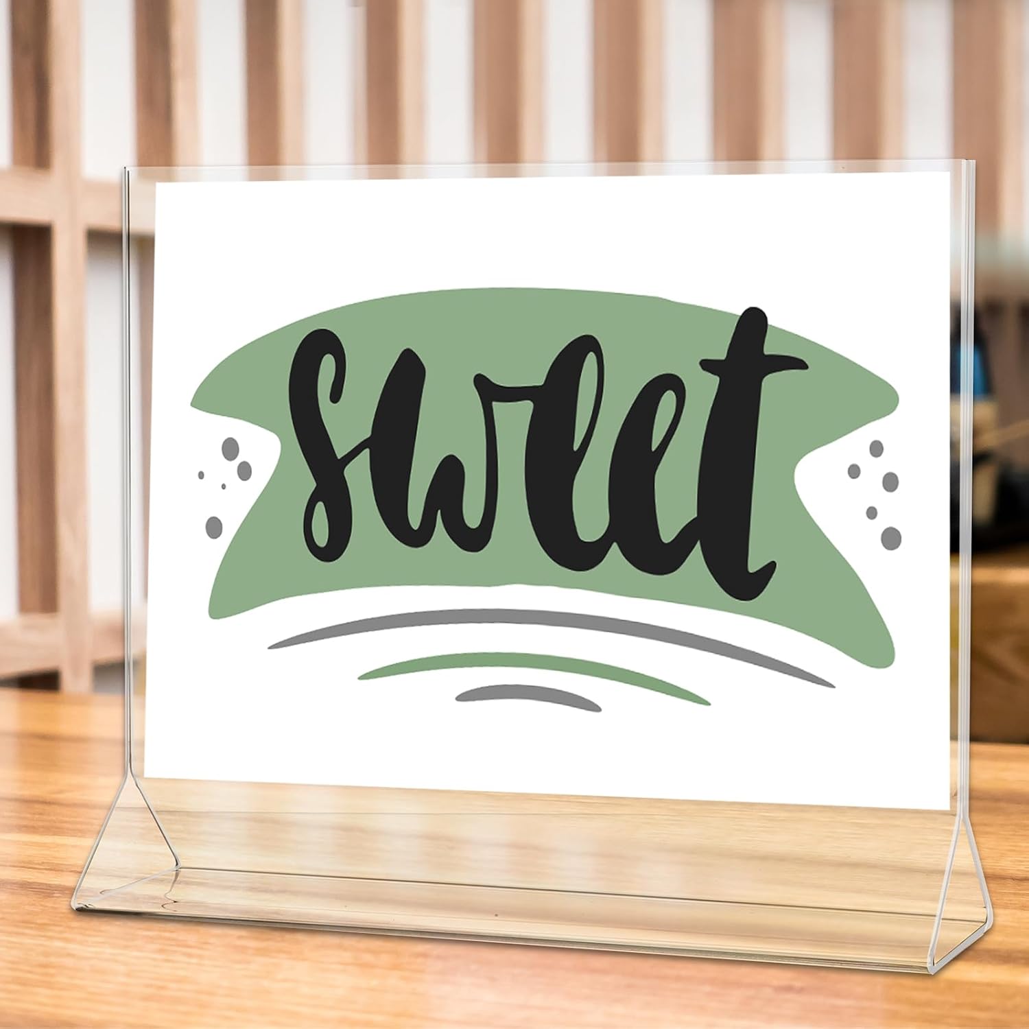 Yulejo 24 Pack Acrylic Sign Holder, Plastic Clear Table Display Holder Double Sided Menu Display Stands T Shaped Card Picture Frames for Office, Weddings, Meetings, Hotels (11 x 8.5 Inches)