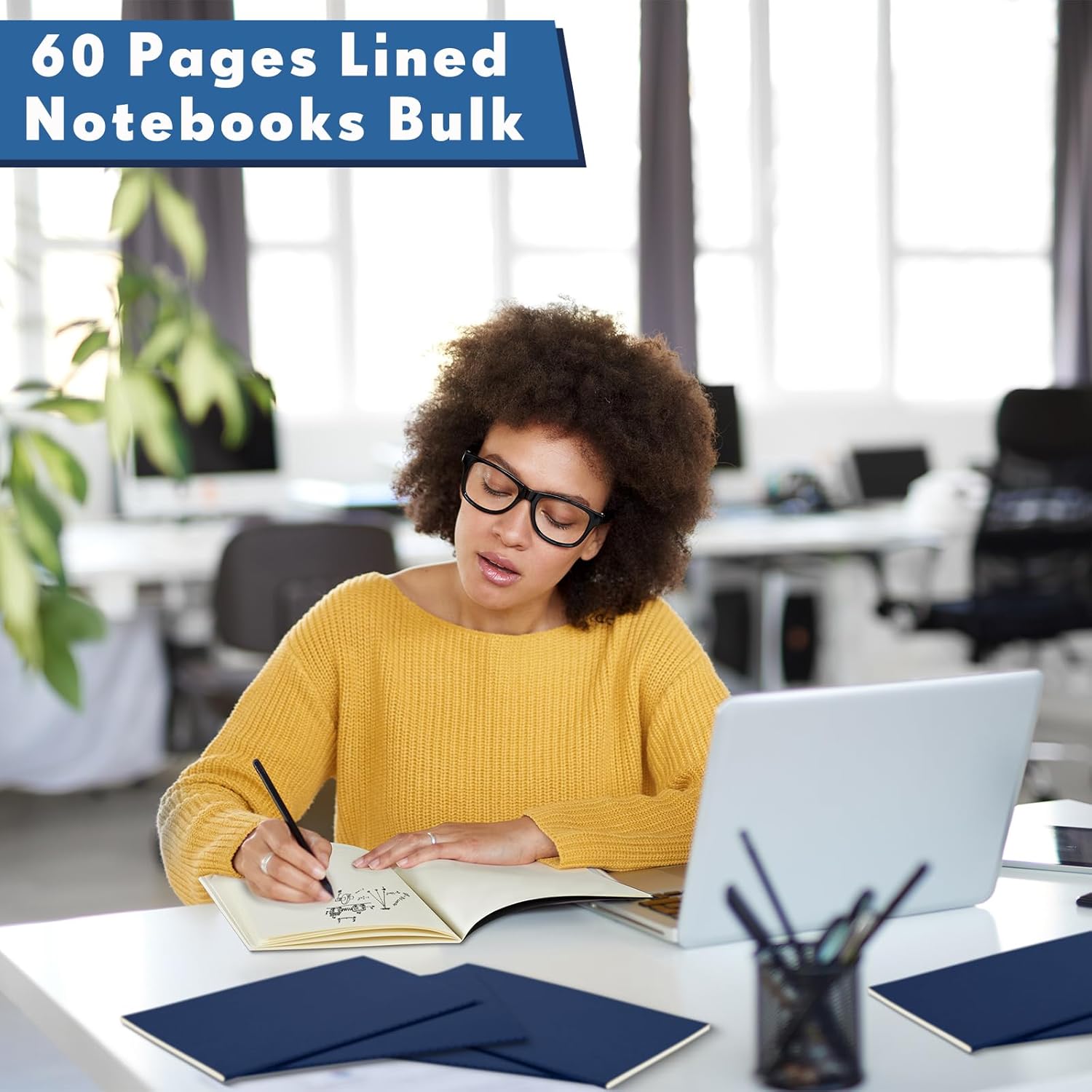 Mimorou 100 Pcs Kraft Notebook Journals 5.5 Inch x 8.3 Inch A5 Softcover Notebooks Bulk for Writing Sketch Office Notepad with 60 Pages 30 Sheets (Navy,Unlined)